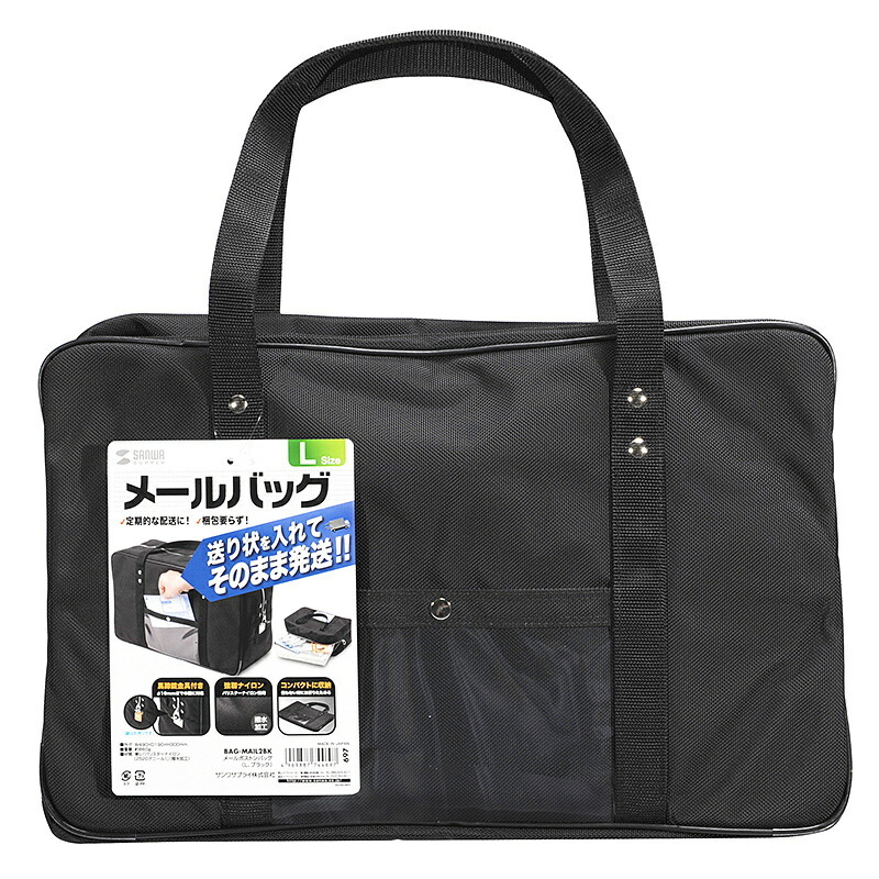 書類の輸送やメールバッグとして使える丈夫なボストンバッグ。Lサイズ。ブラック。