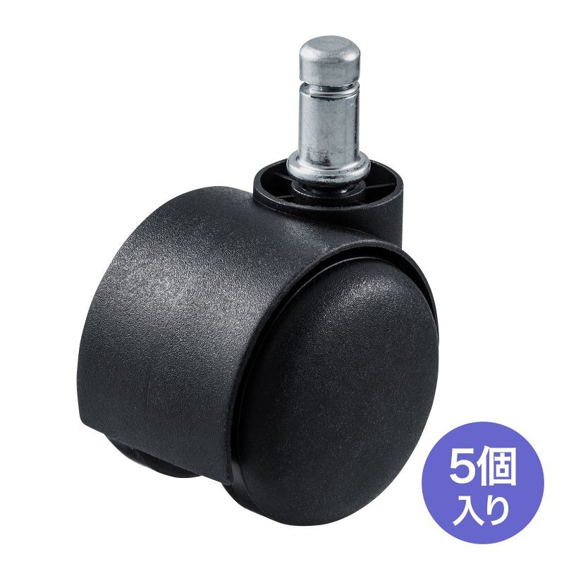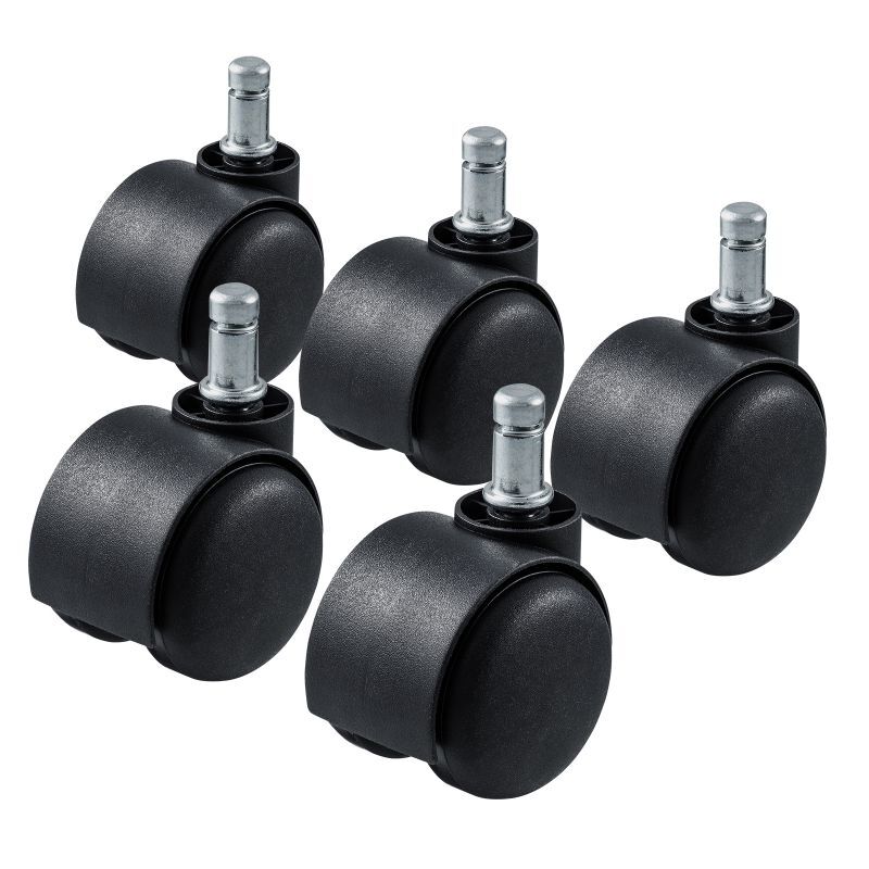 カーペット床上での使用に適したナイロン製のキャスター。細径タイプ。5個入り。