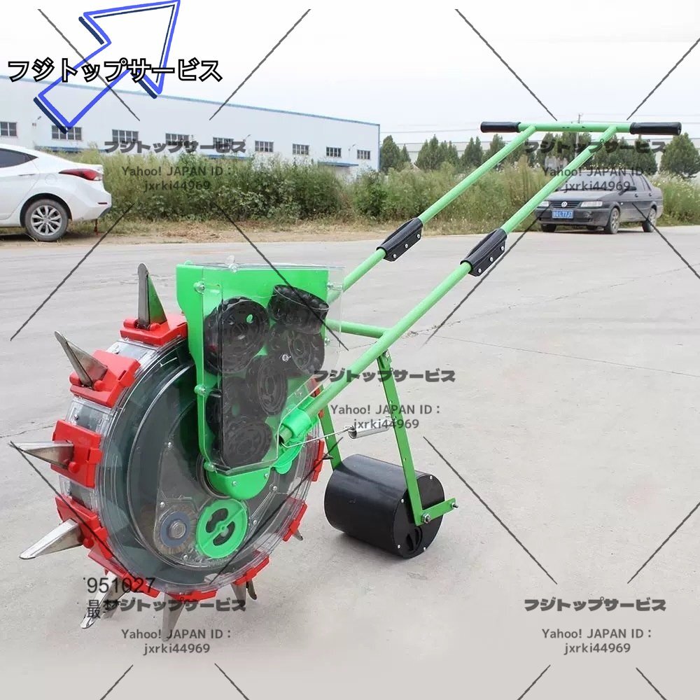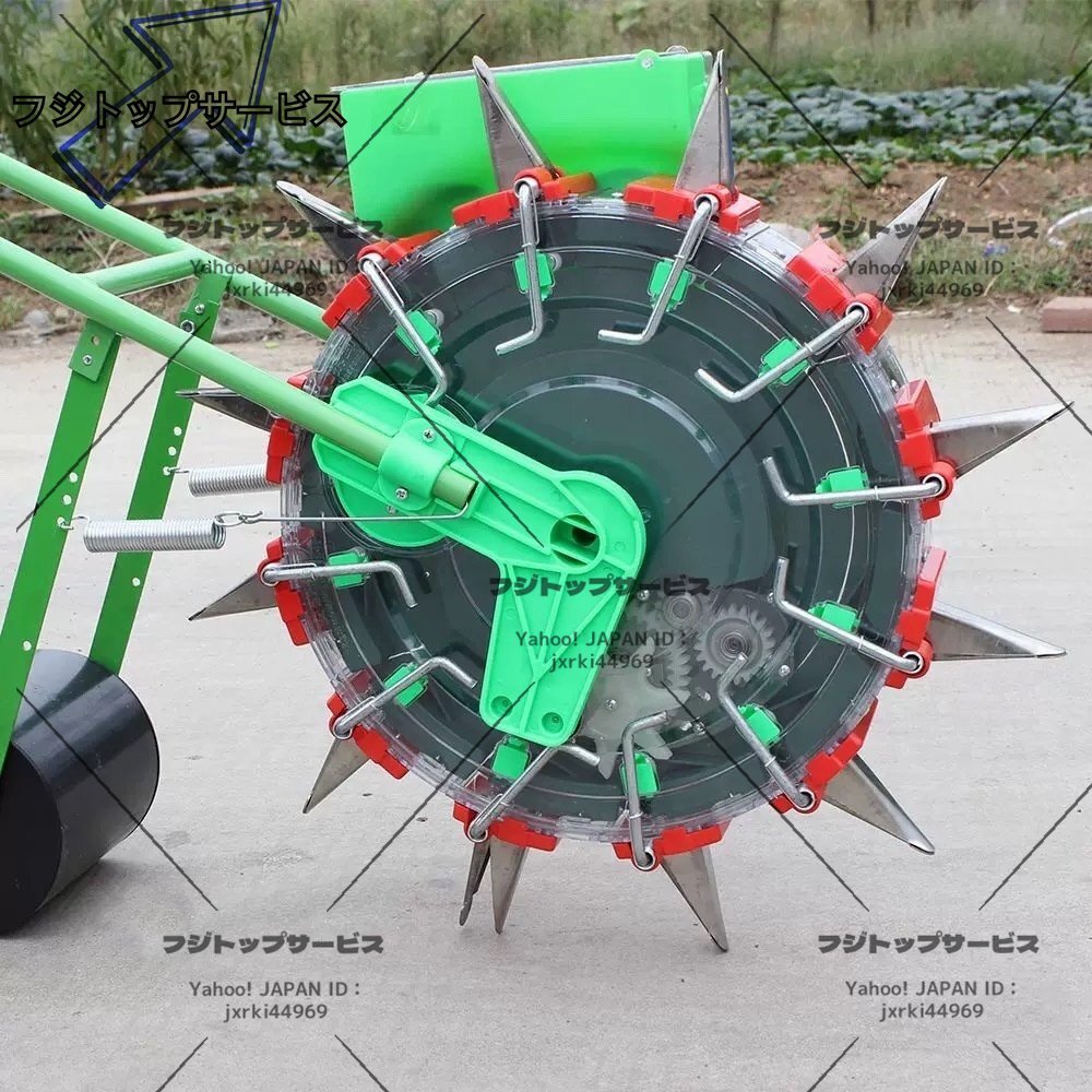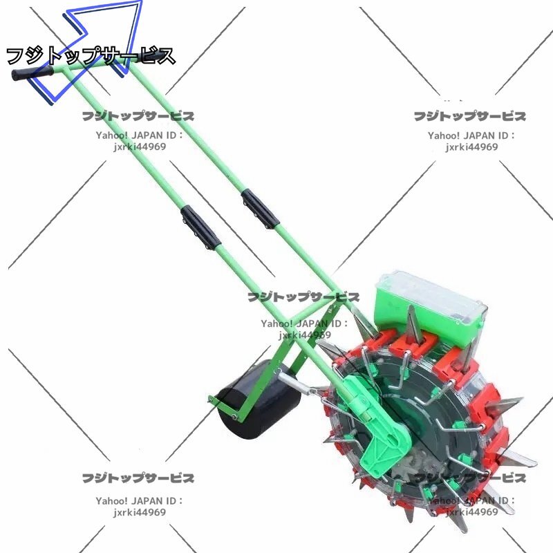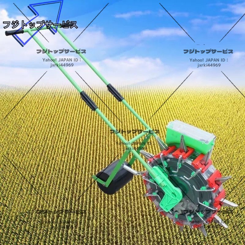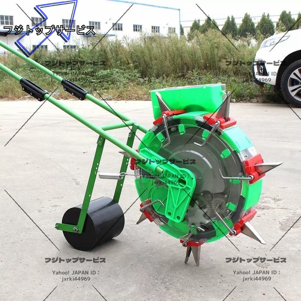■状態:新品未使用 ■透明ホッパー、透明繰出部。 点播性能大幅アップ! 安心の防雨構造。 小規模農家さんでよく使われています。 ※土壌を選ばず、種まきできる人力播種器です。コーティング種子をセットし、畑の上をころころと進めるだけで均等にタネまきができます。 ■材質:プラスチック+ステンレススチール ■播種口の数量:12個(間隔:13.5cm) ■播種の深さ:3.5cm-7.8cm ■播種した種の数量:1-2粒 ■重さ(約):10KG