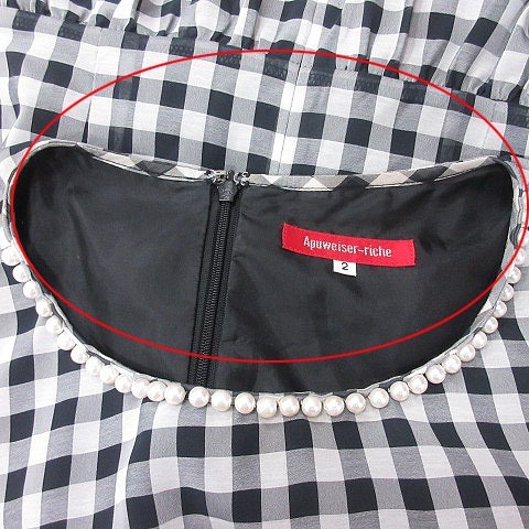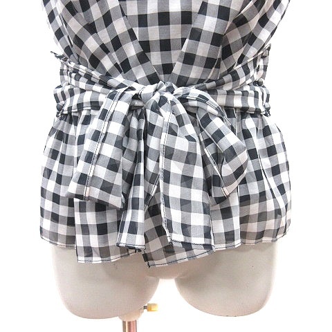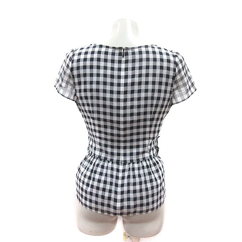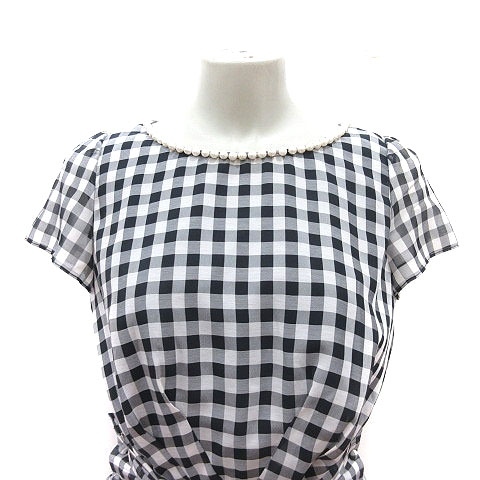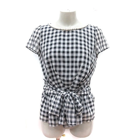 アプワイザーリッシェ Apuweiser-riche ブラウス ギンガムチェック パール 半袖 2 黒 ブラック 白 ホワイト /MS ■MO レディース