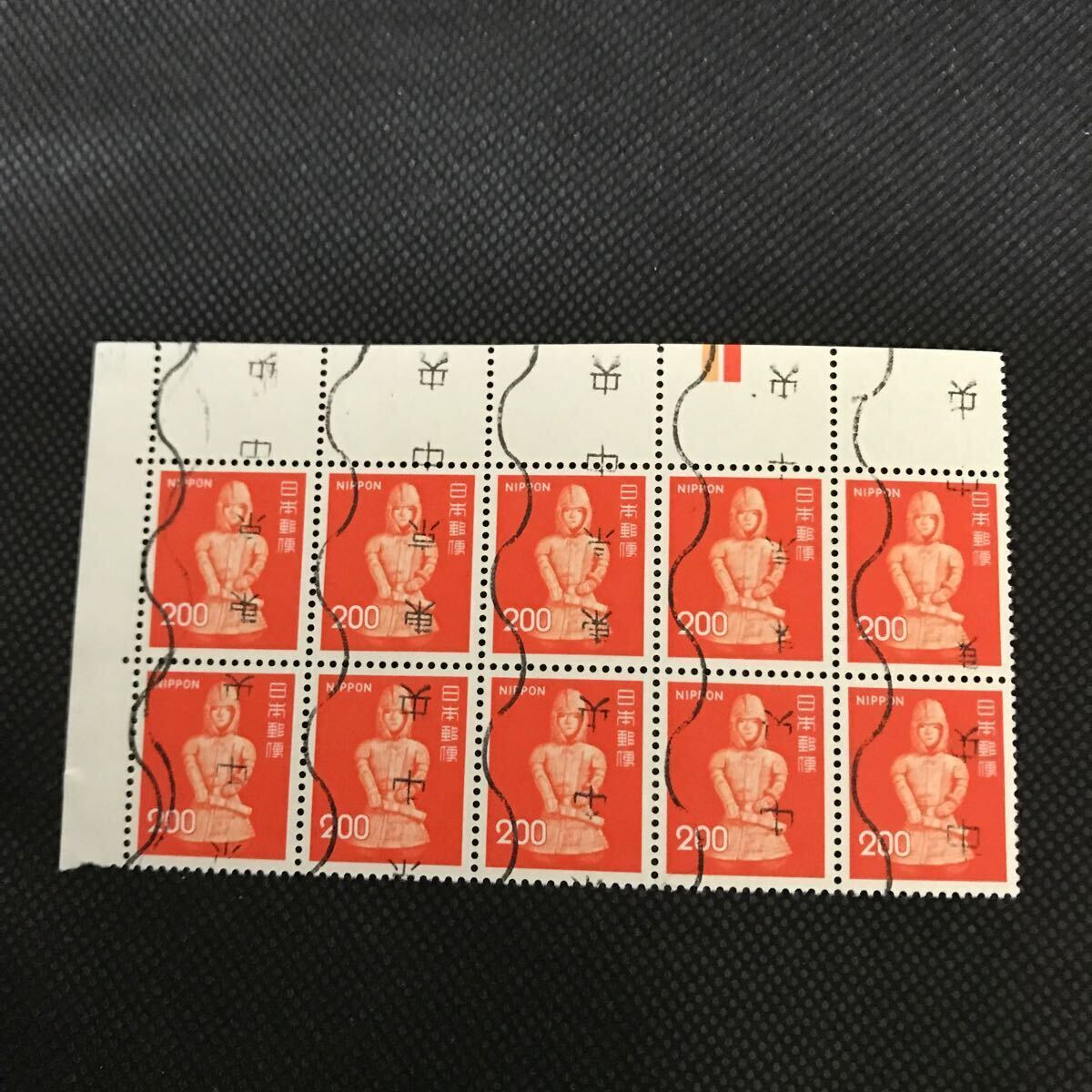 【使用済み】切手 ハニワの兵士 200円 10枚ブロック カラーマーク