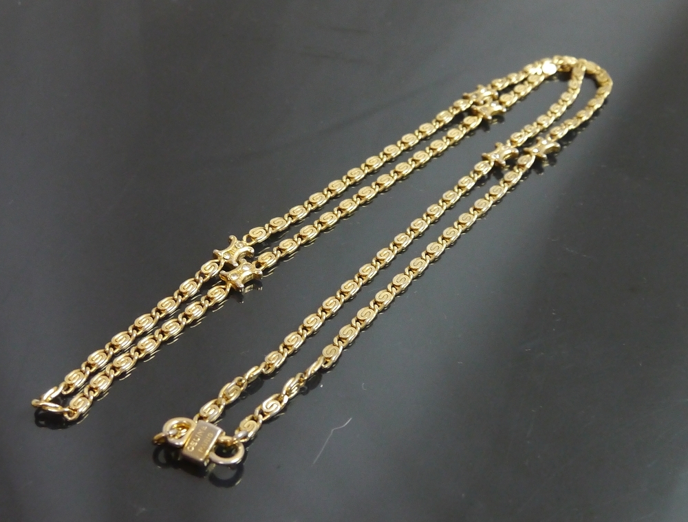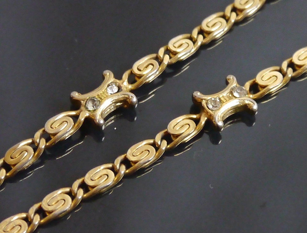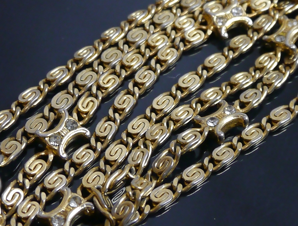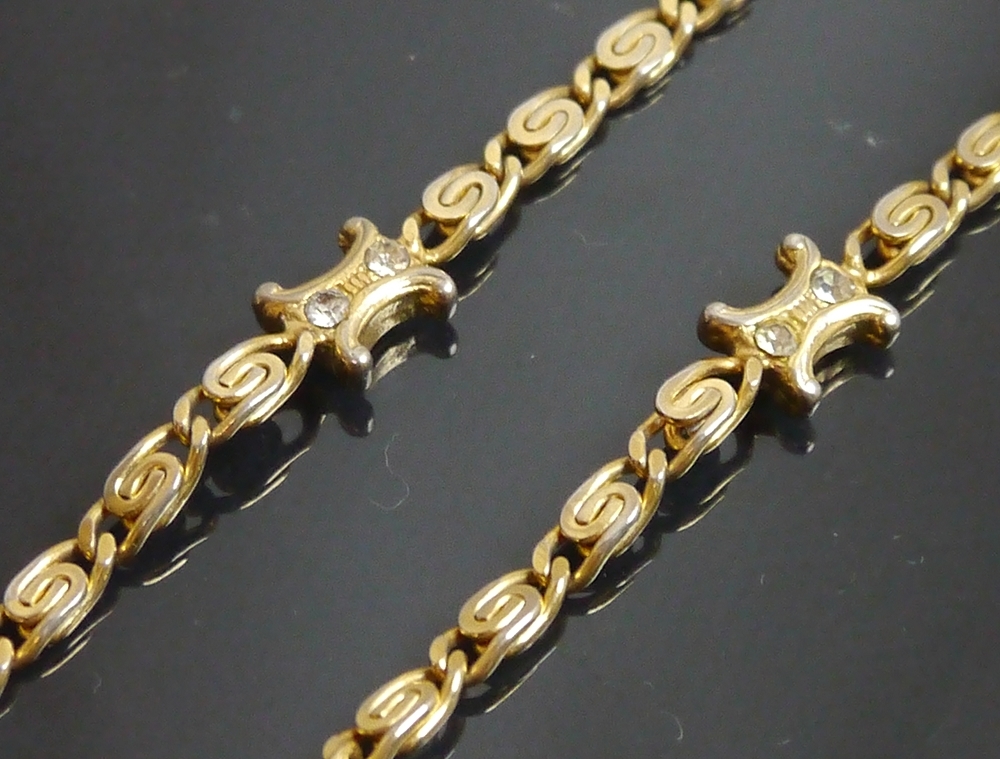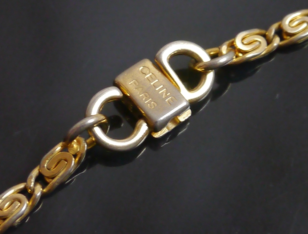 セリーヌ ロングネックレス マカダム ゴールド ラインストーン ヴィンテージ