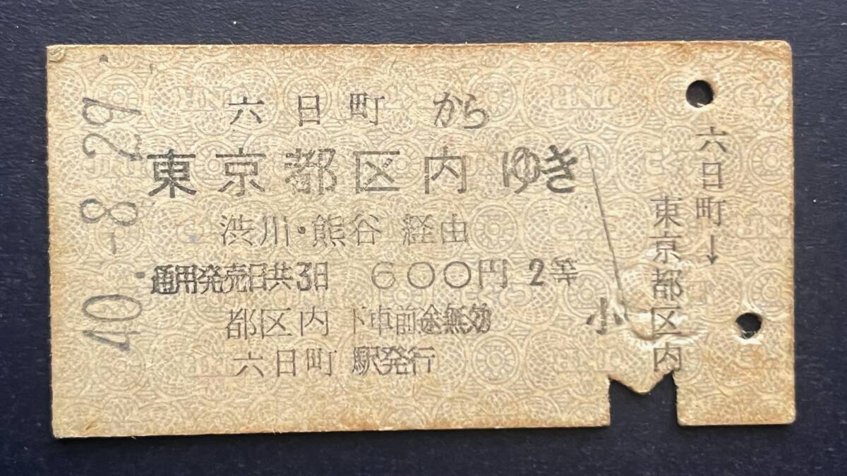 国鉄、硬券、乗車券、上越線 六日町駅−東京都区内、昭和40