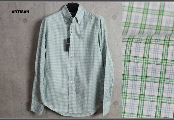 新品 アルチザン メン 大人マドラスチェック コットン ボタンダウン 長袖シャツS/緑系 定価2万円/ARTISAN MEN
