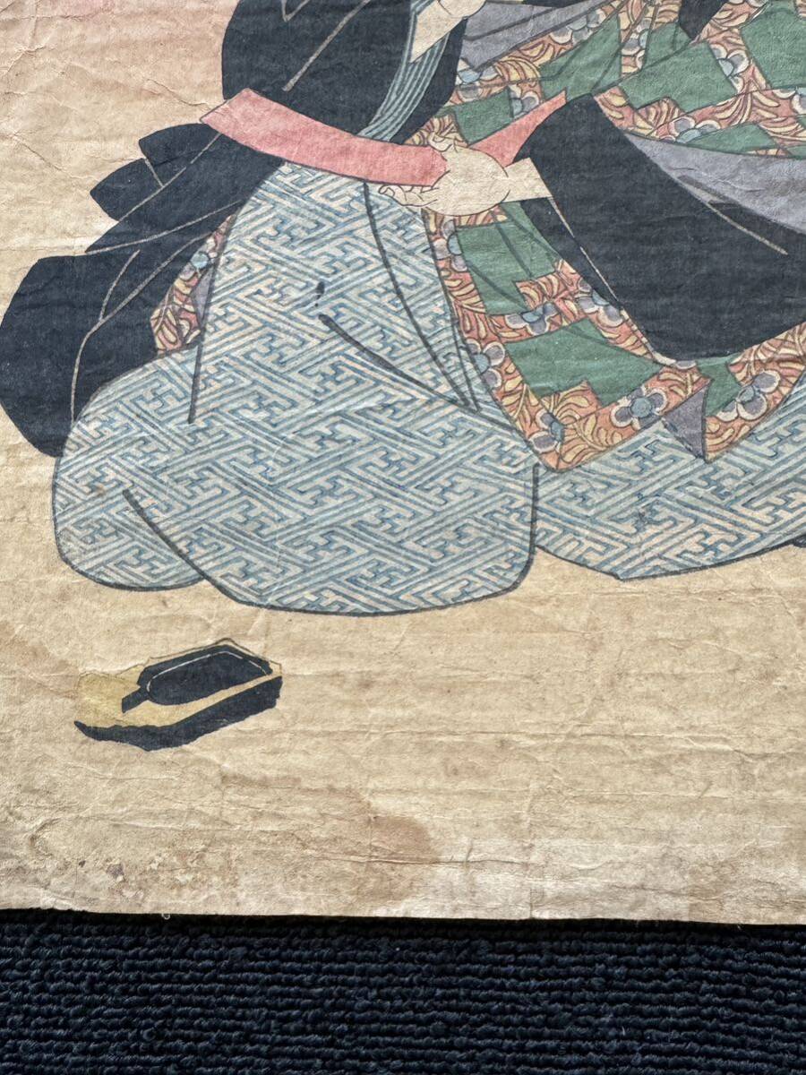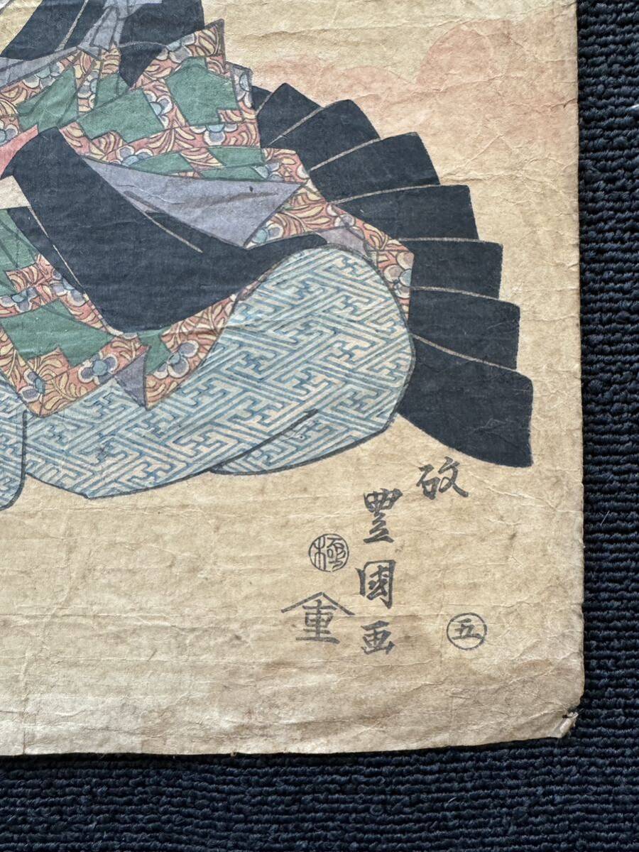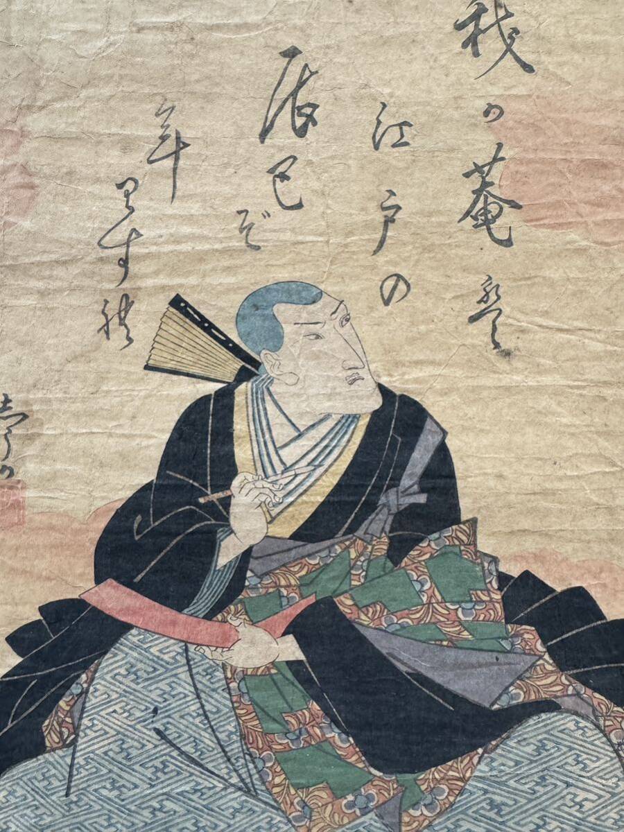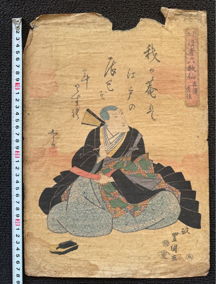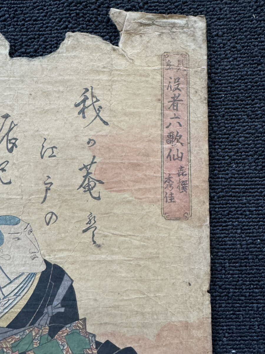 明治期/真作 歌川豊国 「見立役者六歌仙 喜撰秀佳」本物浮世絵木版画 歌舞伎絵 役者絵 芝居絵 錦絵 大判 裏打ち