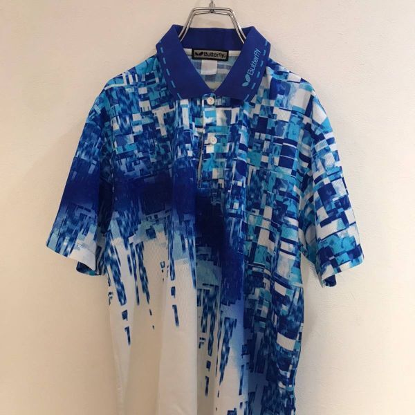 商品: BUTTERFLY/バタフライ 半袖 襟付きシャツ 卓球 ブルー 青 メンズ M
