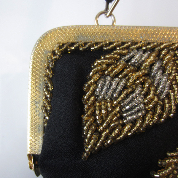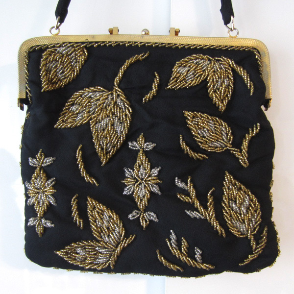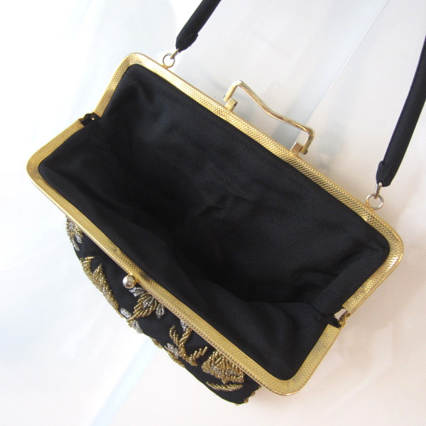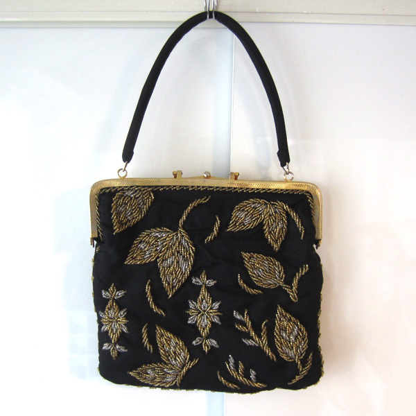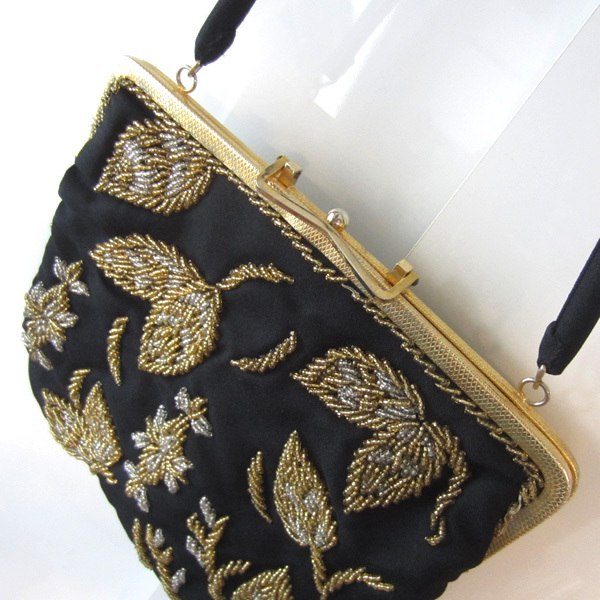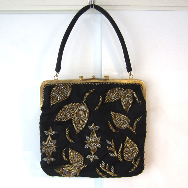 黒地にビーズ刺繍がレトロなハンドバッグです。