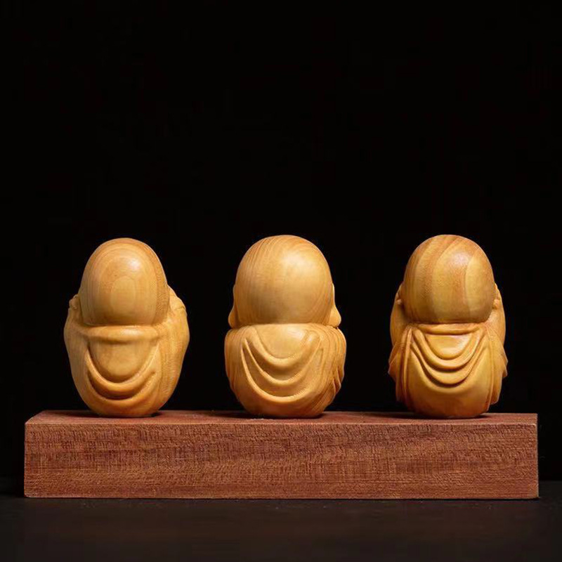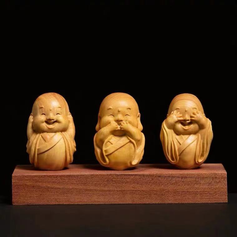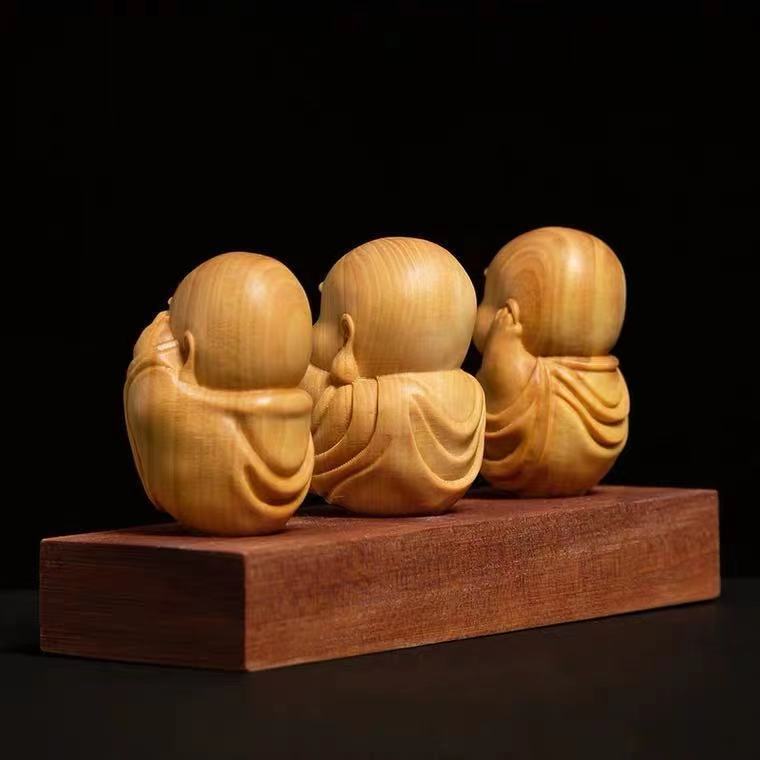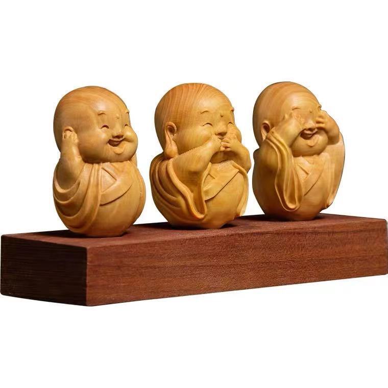 人気新品 黄楊木彫り立ち小坊主3枚