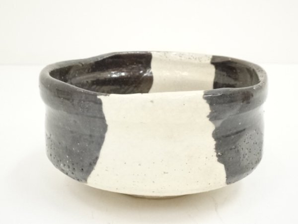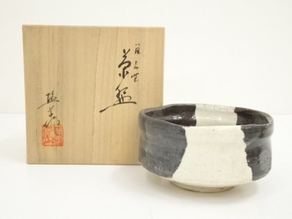 ys6955288; 中島塩草造 鼠志野沓形茶碗(共箱)【道】