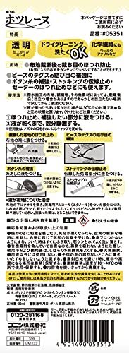 「コニシボンドほつれ止め用接着液ホツレーヌ30ml入#05351」▼4901490053513▼(商品説明)・イエロー 30ml #05351・裁断後の 布地 ・ リボン の糸のほつれがキレイにおさまります。ほころびの 修繕 や小さな 布 パーツ の 補強 などの普段使いにも クラフト にも大活躍します。・使用用途:布地裁断後の裁ち目の ほつれ 防止 。 ビーズ の テグス の結び目の 補強 。 ボタン 糸 の補強。 ストッキング の 伝線 止め 。・特長: 洗濯 ・ ドライクリーニング OK。 ウール ・ アクリル などの化学繊維にも使用可能。仕上がりがキレイな透明タイプ。・注意事項:撥水加工の布地、絹織物、その他素材によっては乾燥後白く目立つ場合がありますのであらかじめ目立たない場所で試してからご使用下さい。液が濁ったり、粘り気が出た場合は50度位のお湯で温めると元の状態に戻ります。 凍結厳禁。10~40度の場所で使用・保管する。火気厳禁。引火性の液体。説明 【用途】 ●布地裁断後の裁ち目のほつれ防止 (お気に入りの布地をカンタンにワッペンにすることが出来ます) ●ビーズのテグスの結び目の補強に ●ボタン糸の補強・ストッキングの伝線止め・セーターのほつれ止めなどにも使えます。 【特長】 ●透明(仕上がりがキレイ) ●ドライクリーニング・洗濯OK ●化学繊維にも使えます(ウールやアクリルなど)