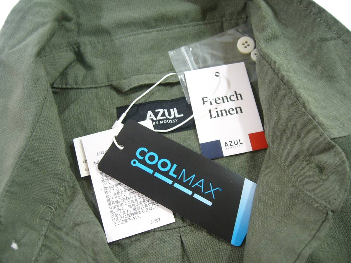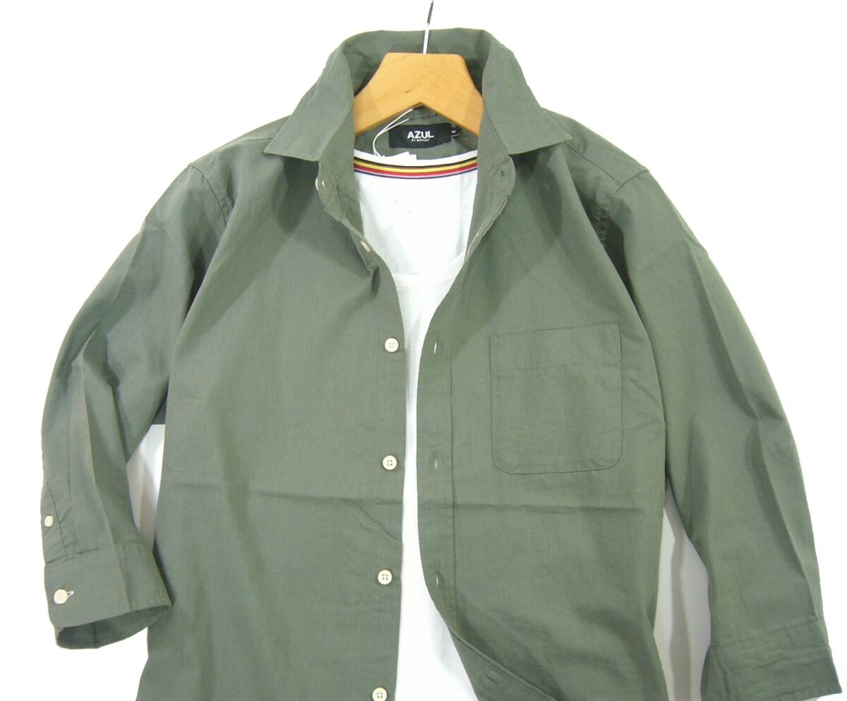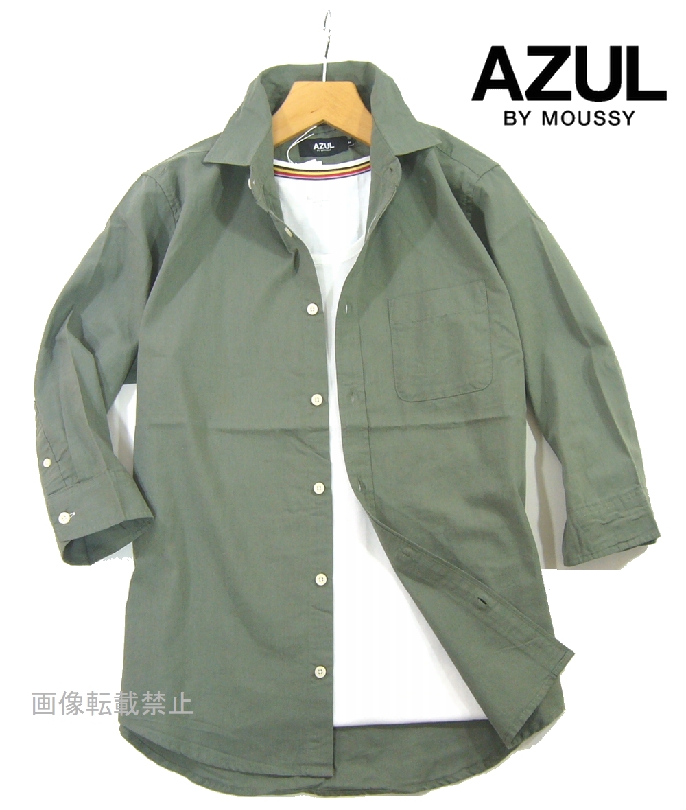 新品 アズールバイマウジー AZUL BY MOUSSY 清涼感 フレンチリネン 七分袖 シャツ M ライトカーキ COOLMAX 麻混 7分袖