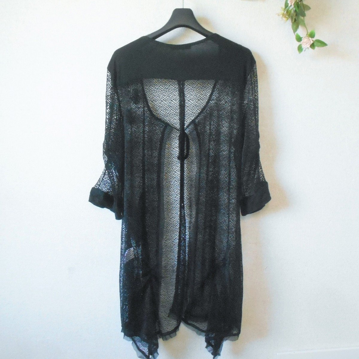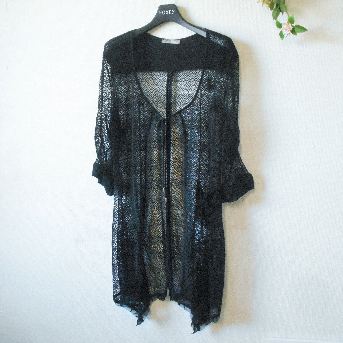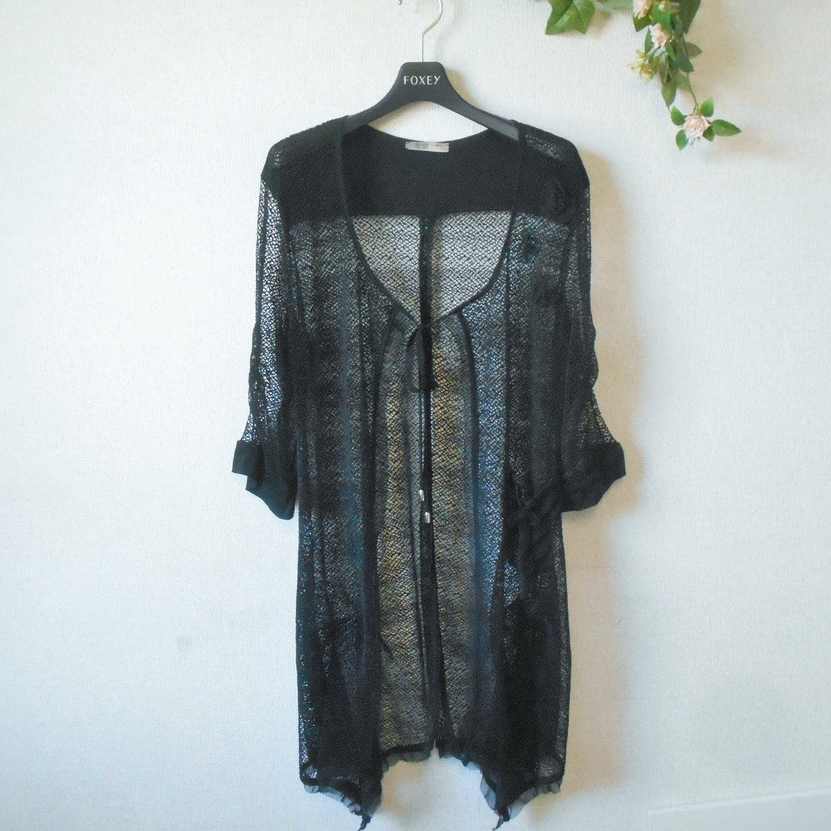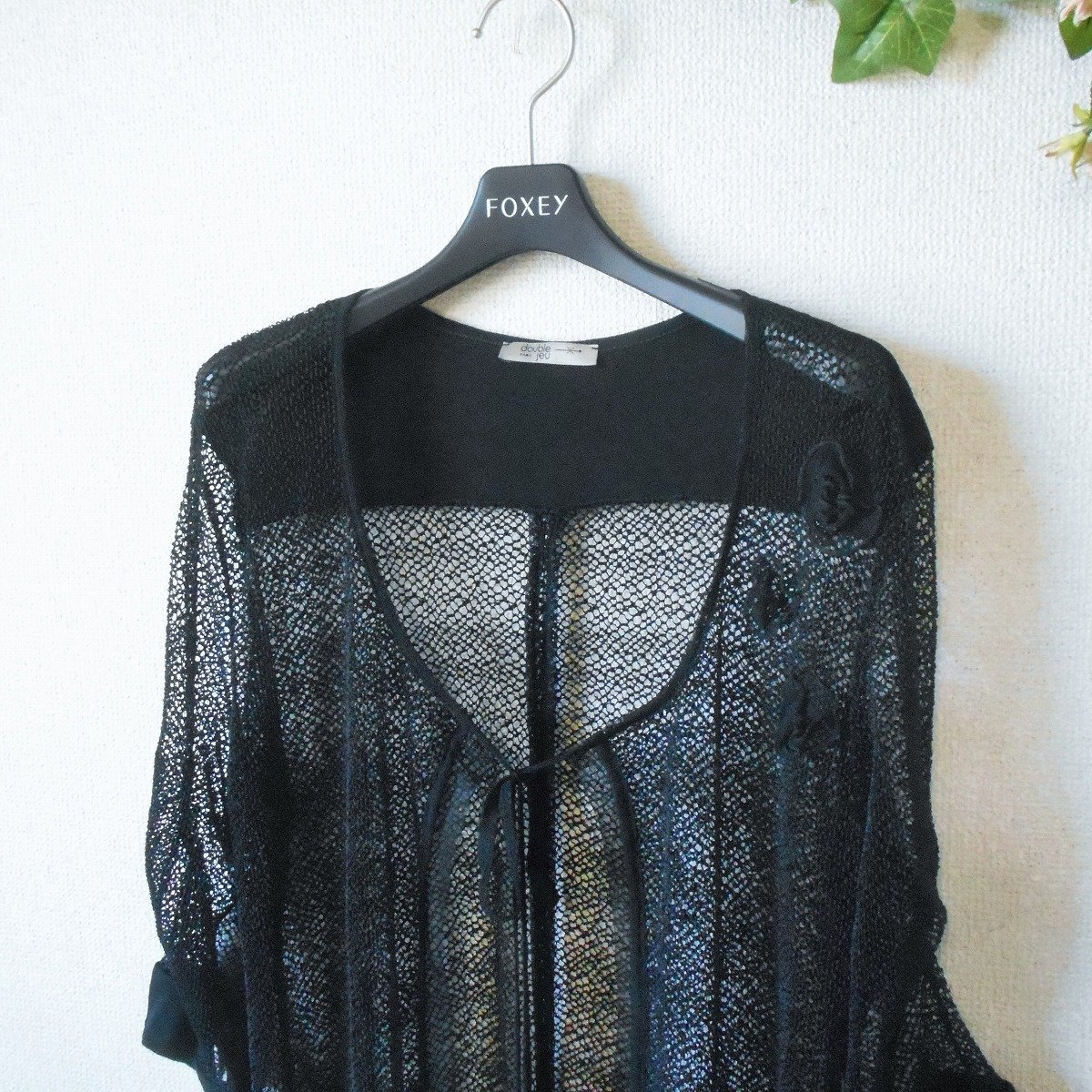 double jeu 7分袖 ジャケット お花 モチーフ 付き メッシュフランス 製 夏 黒 L