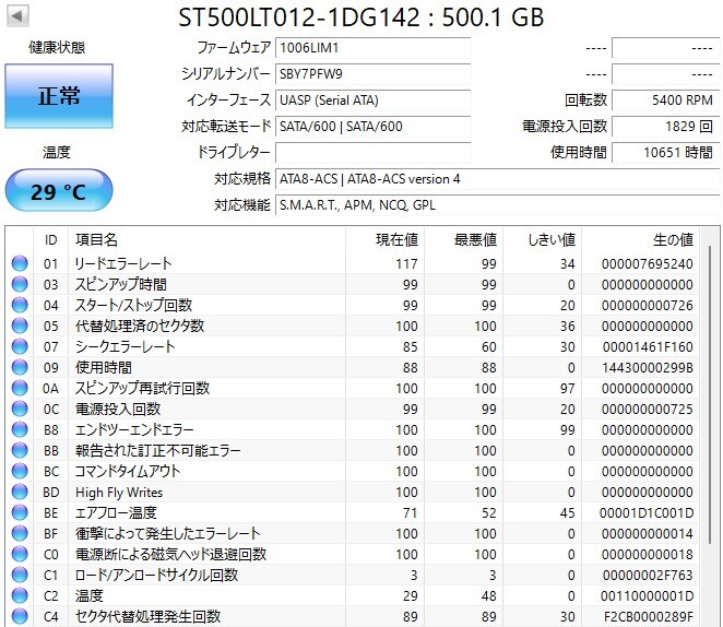 容量:500GB 接続方式:SATA(Serial ATA) ■CrystalDiskInfoにてエラーなしの正常動作品です。 ■0フォーマット済みの為、現在は未割当状態です。 |