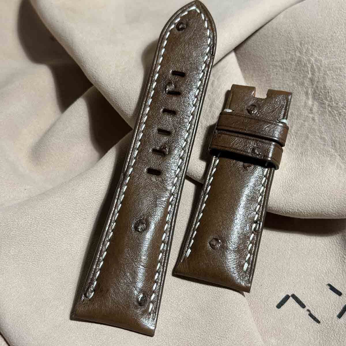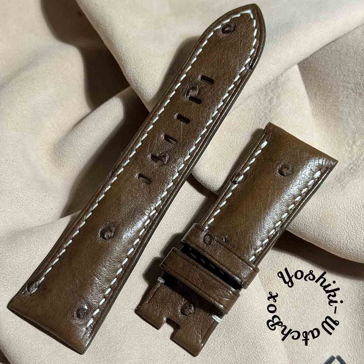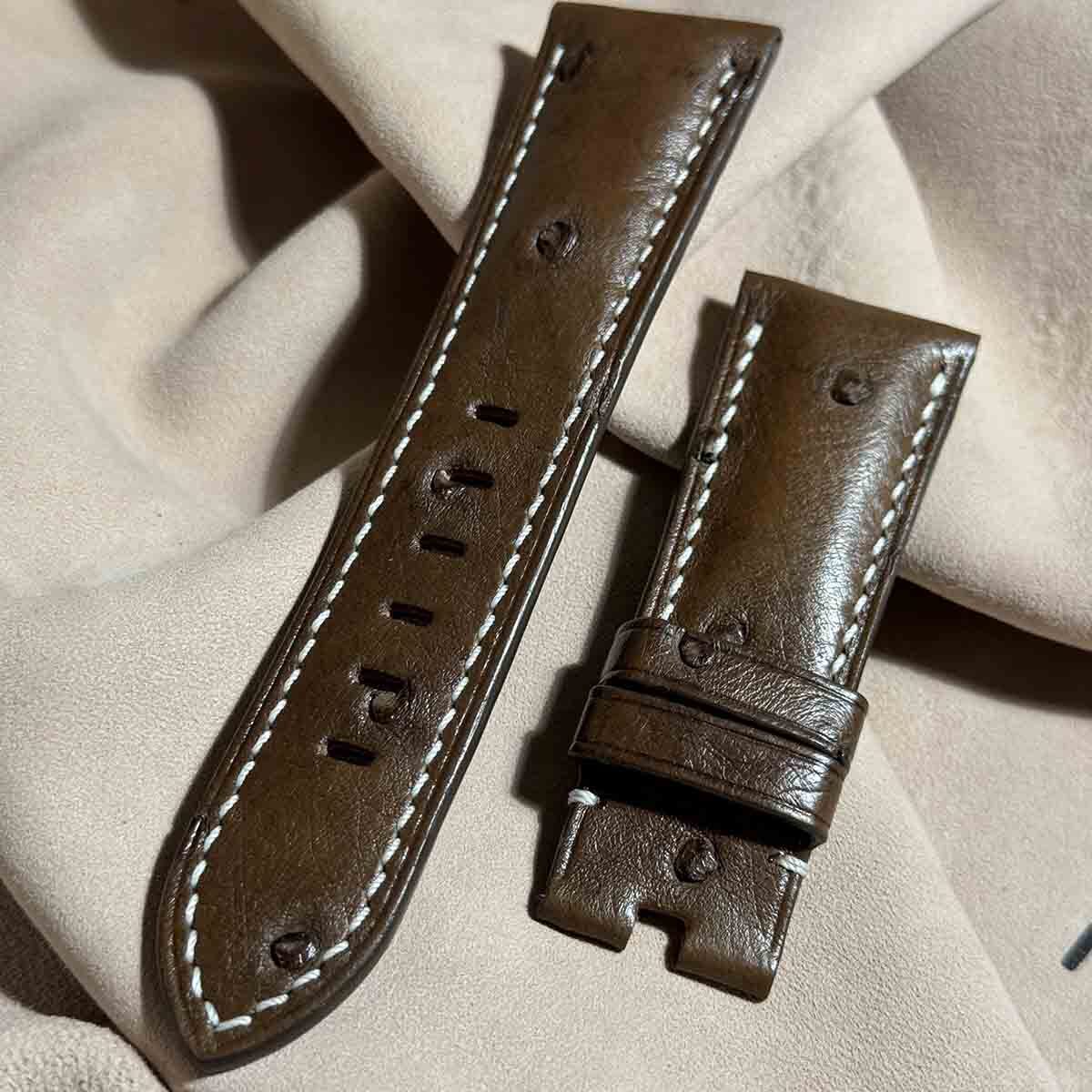 ost-343 オーストリッチレザー 腕時計ベルト ダークブラウン (ラグ幅26mm - バックル幅22mm)