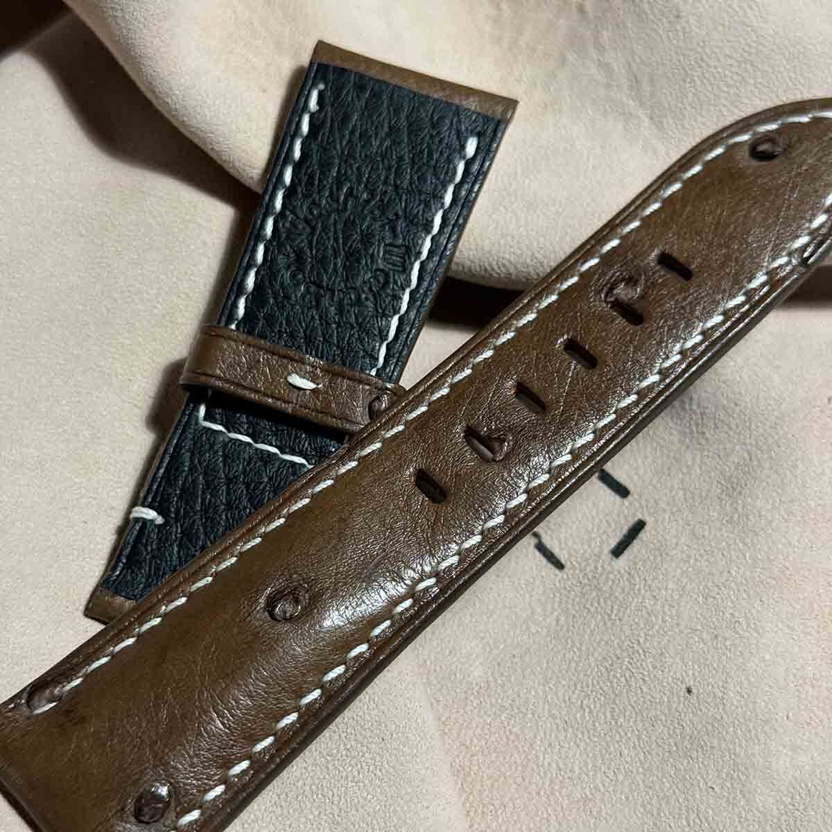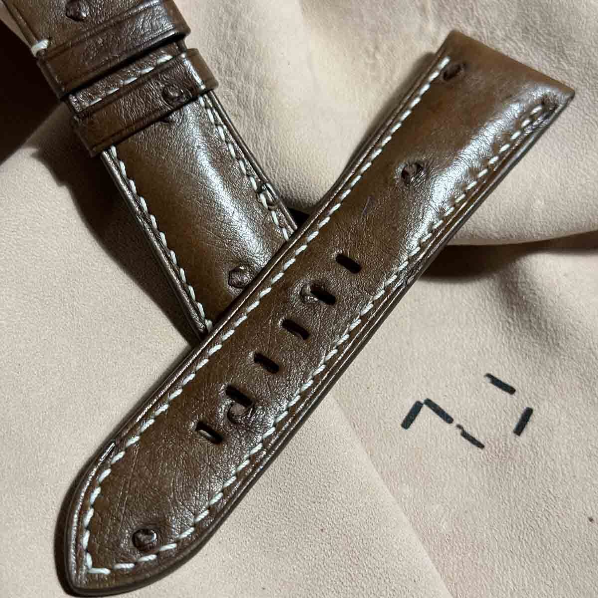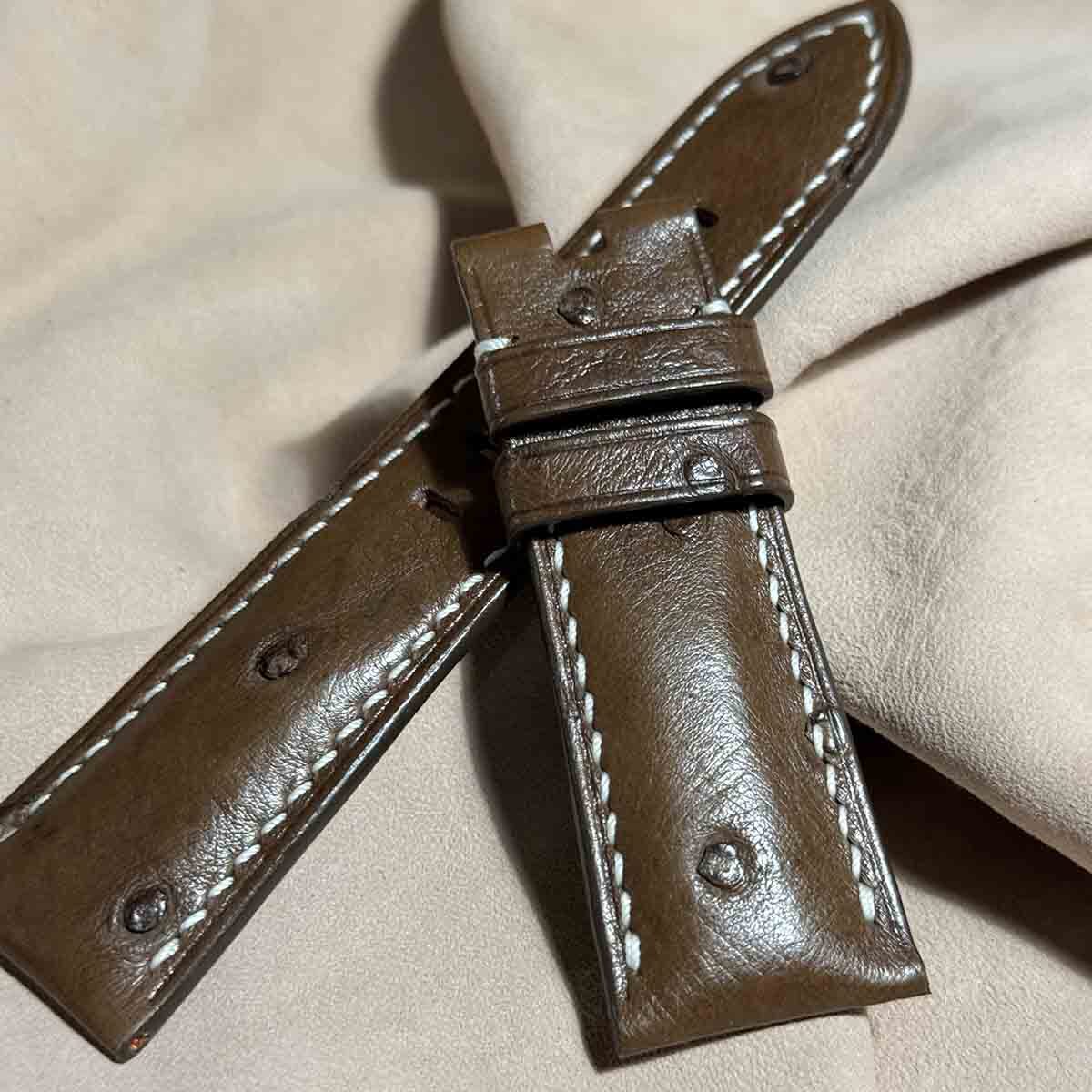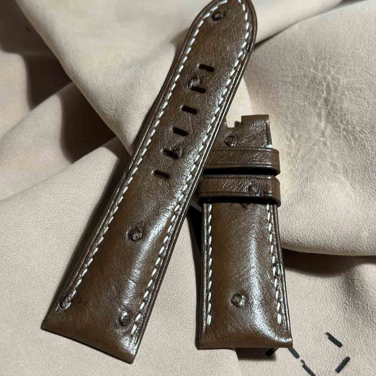 ost-343 オーストリッチレザー 腕時計ベルト ダークブラウン (ラグ幅26mm - バックル幅22mm)