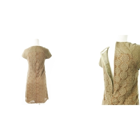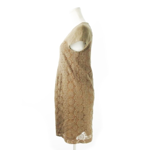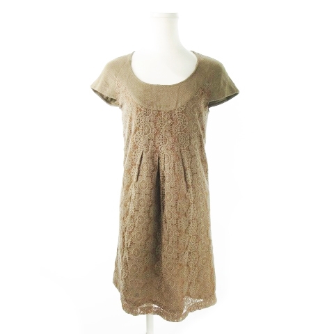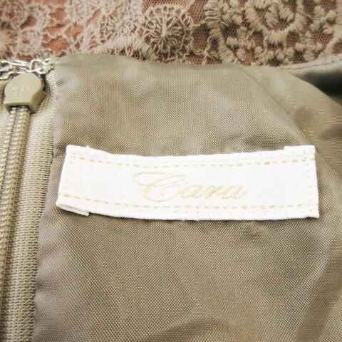 カーラ Cara ワンピース ミニ デコルテ 半袖 レース 切替 ラメ タック S 茶 ブラウン カーキ /CK6 レディース