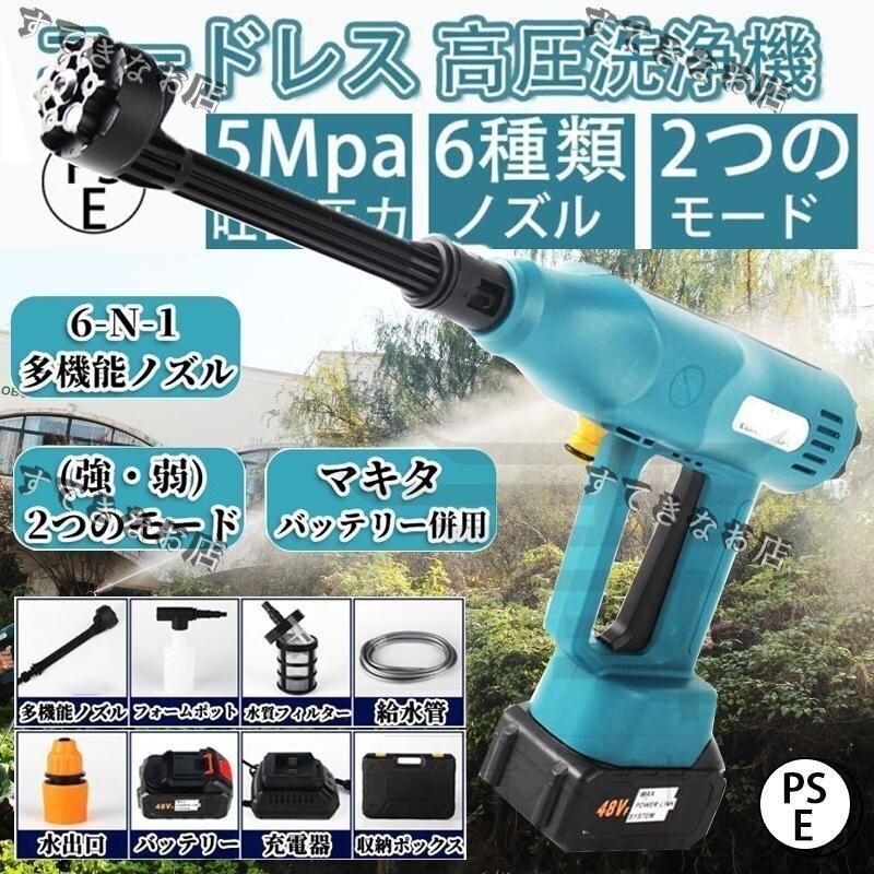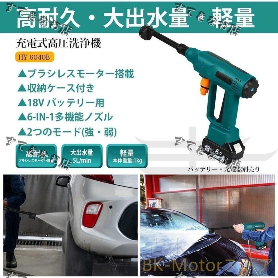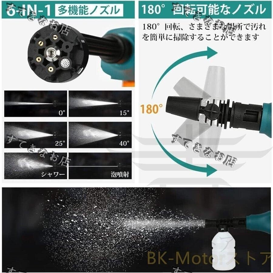 高圧洗浄機 コードレス 充電式 マキタバッテリー併用 6種類ノズル ブラシレスモーター搭載 洗車機 強力噴射 外壁などを清浄 使用便利
