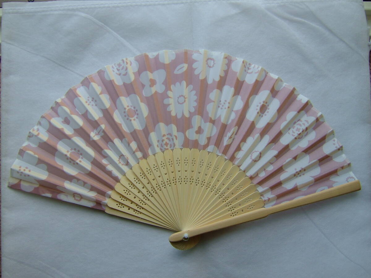 扇子 北欧風フラワー ペールピンク 21cm 花柄