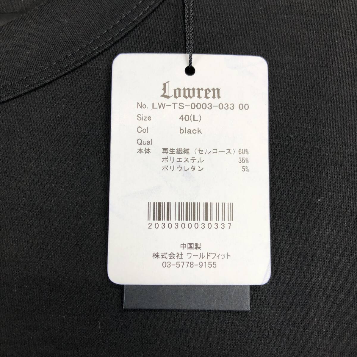 未使用 Lowren ローレン フィットネス 半袖Tシャツ ブラック 冷感生地 40(Lサイズ) 袖ワッペン 刺ロゴ