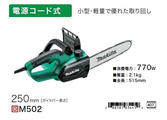 マキタ製の250mm電動式チェ-ンソ-のM502です。