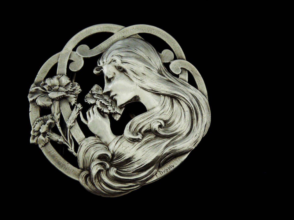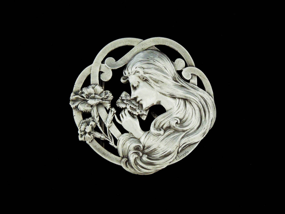 フランス シルバーバックル E.Dropsy作 A.SAVARD工房 純銀 アール・ヌーボー