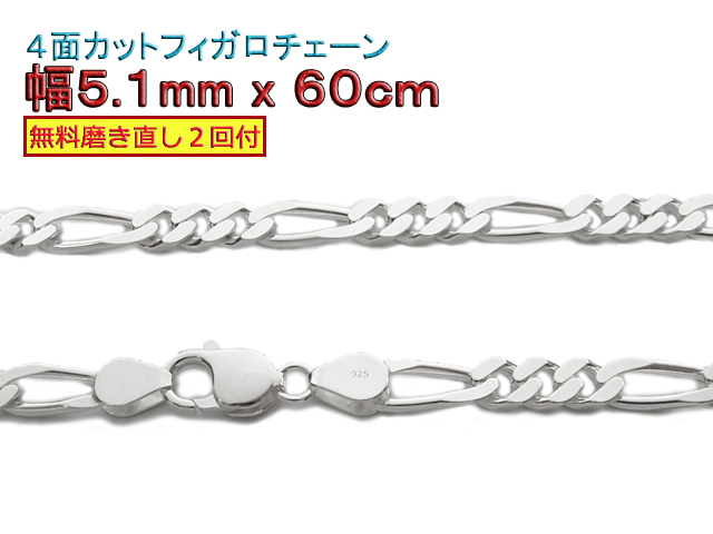 フィガロチェーン シルバー925 チェーン 5.1mm 60mm ネックレス