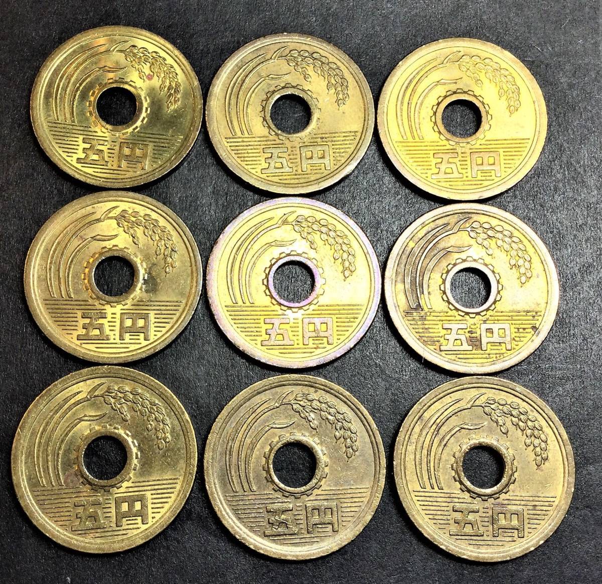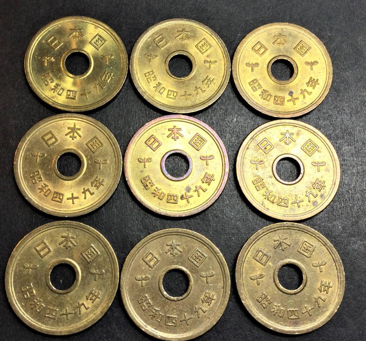 018   昭和49年 5円黄銅貨x9 きれい目揃い