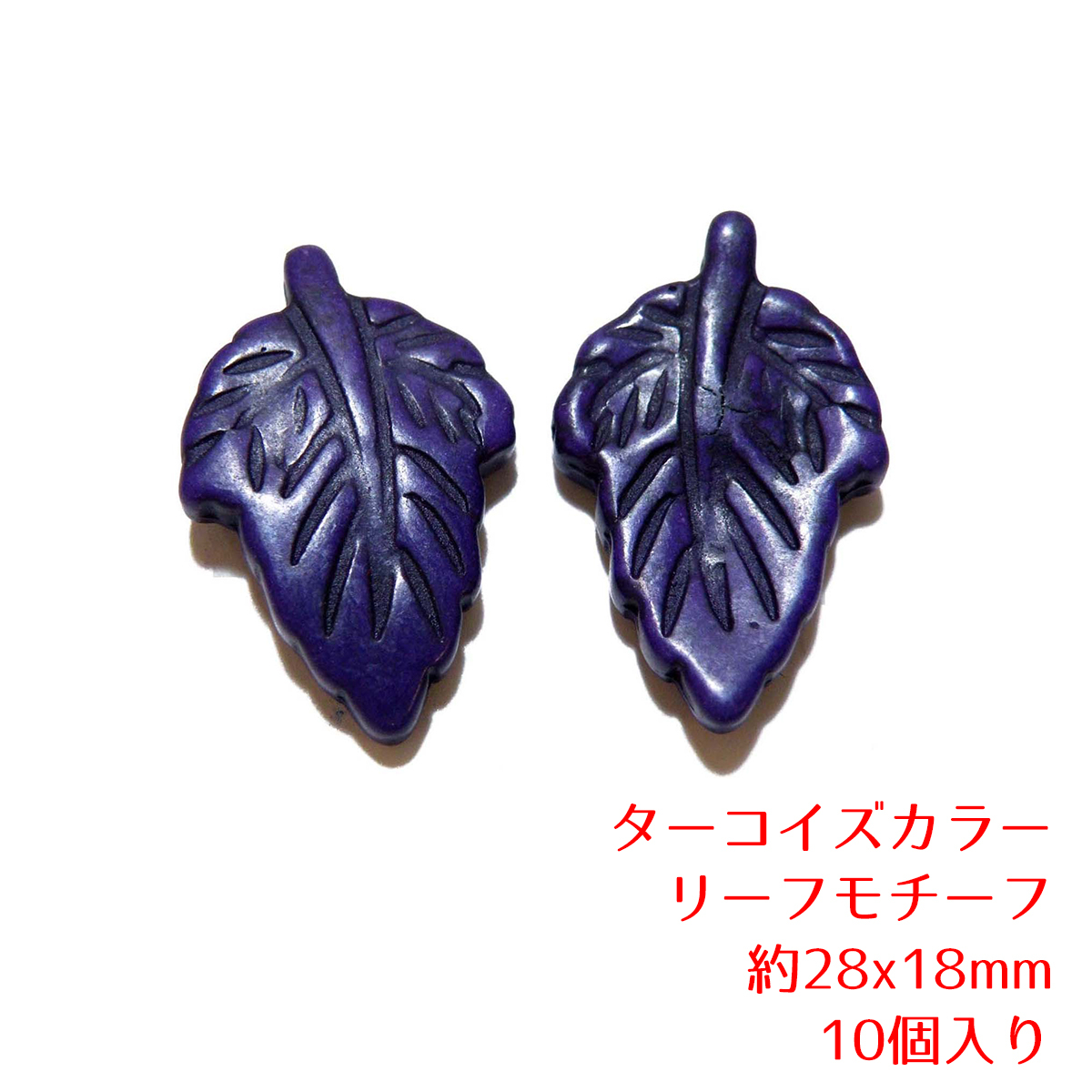 天然石 ターコイズカラーストーン 葉 リーフ モチーフ 約28x18mm 10個入り パープル 19-l28p 【AFP】パーツ ハンドメイド ビーズ DIY