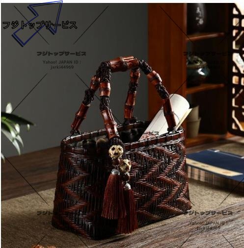 極美品★自然の良品 花火着物かご  バスケット 収納かご おしゃれ竹籠 編み 取っ手 持ち手  手作りトートバスケッ z1201