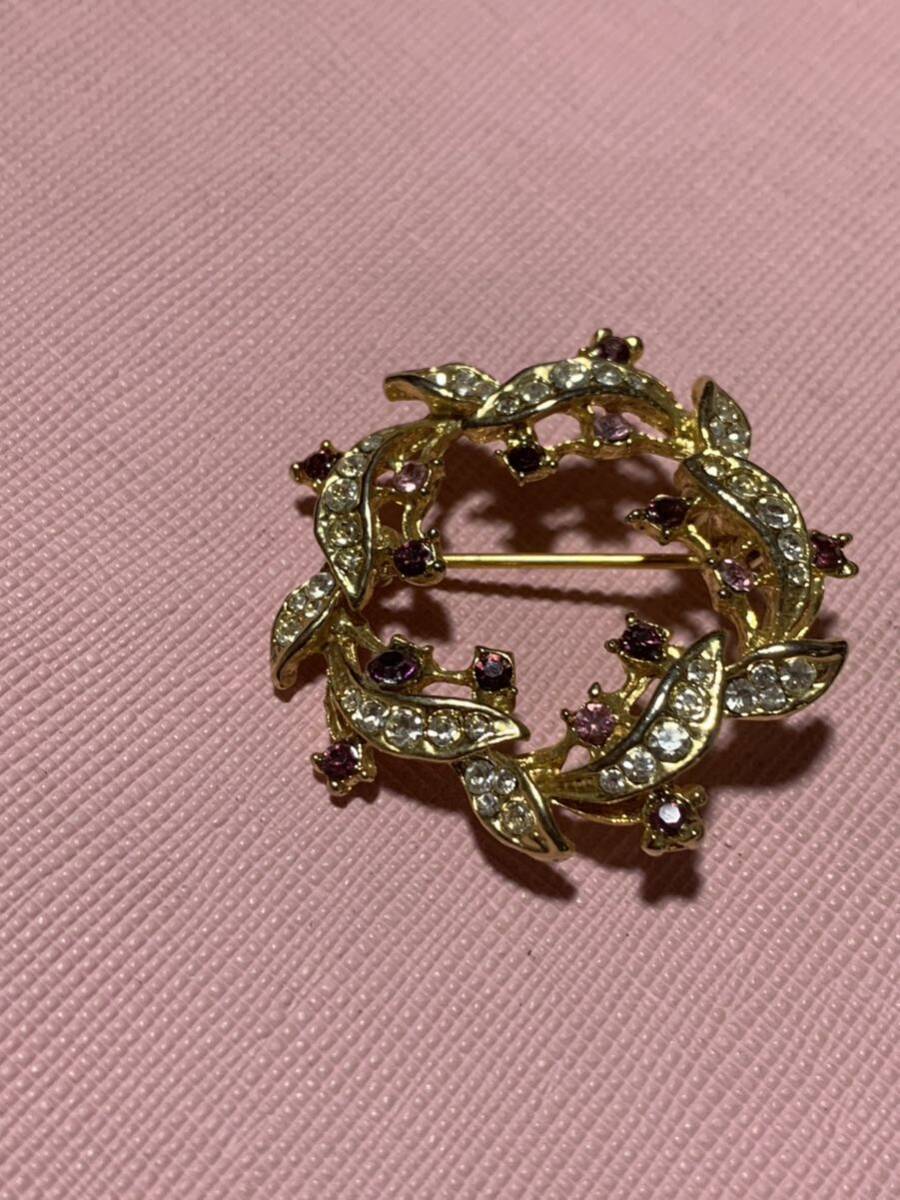 アメジストとジルコニアのブーケの美しいブローチです、サイズは37ー37ミリ、です