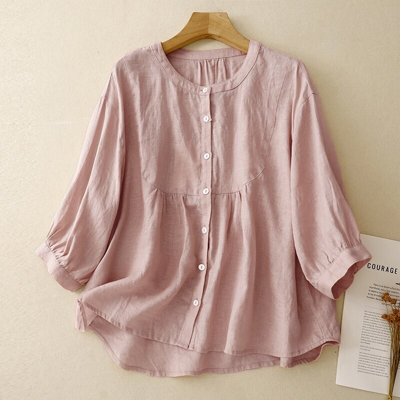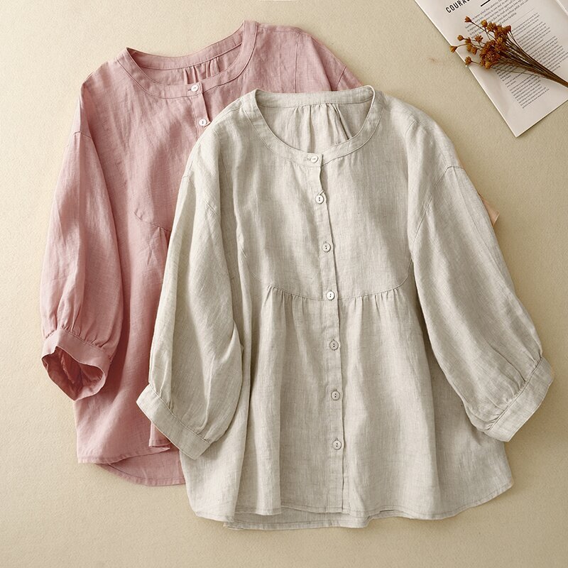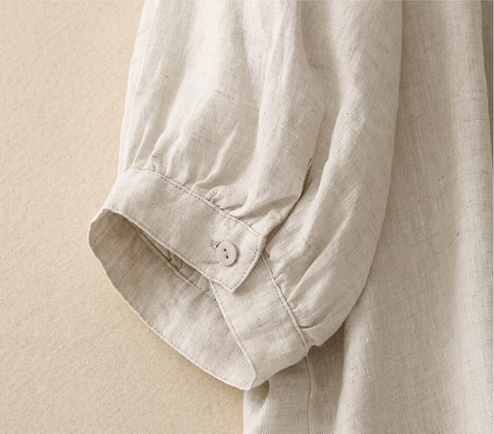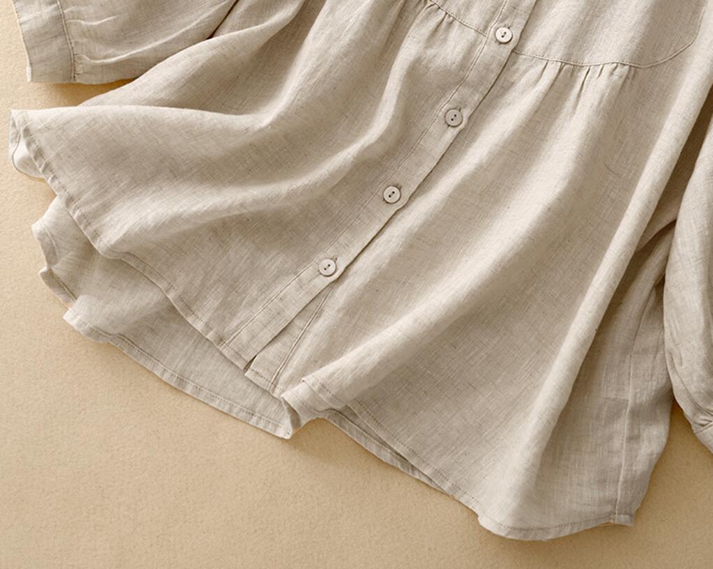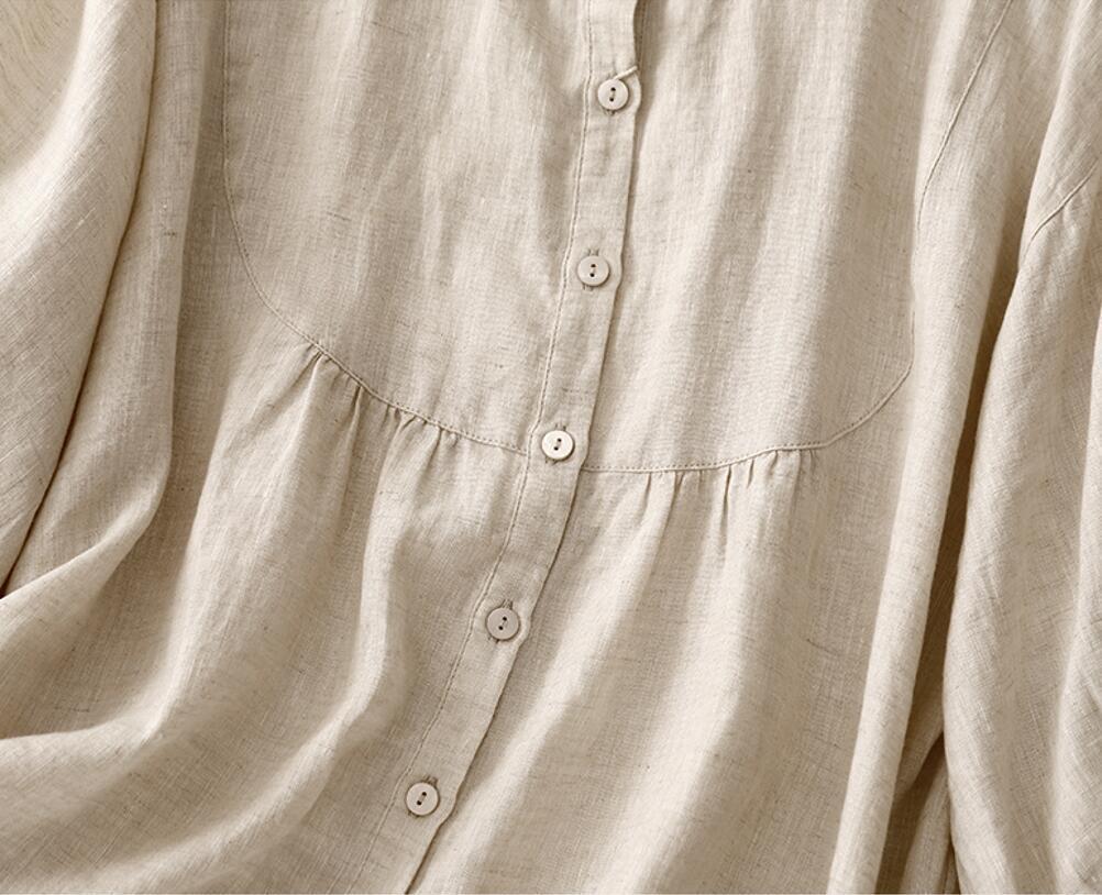 春夏新品~シャツ チュニック 無地 レディース ブラウス トップス ナチュラル チュニック 大人可愛い 通勤 カジュアル~麻色~XL