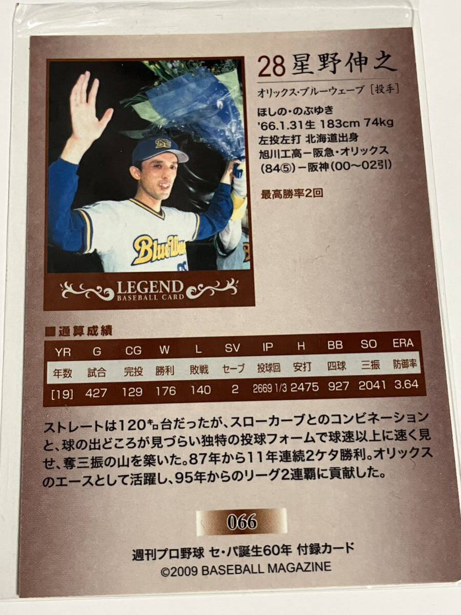 オリックス 星野伸之 66 週刊プロ野球 セパ誕生60周年 付録カード BBM2009