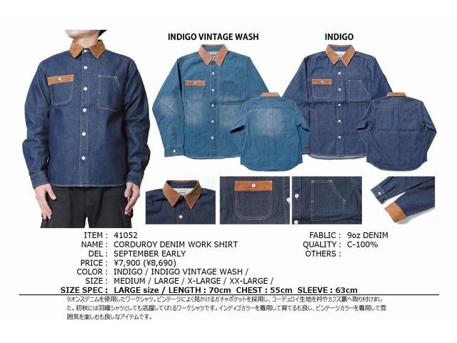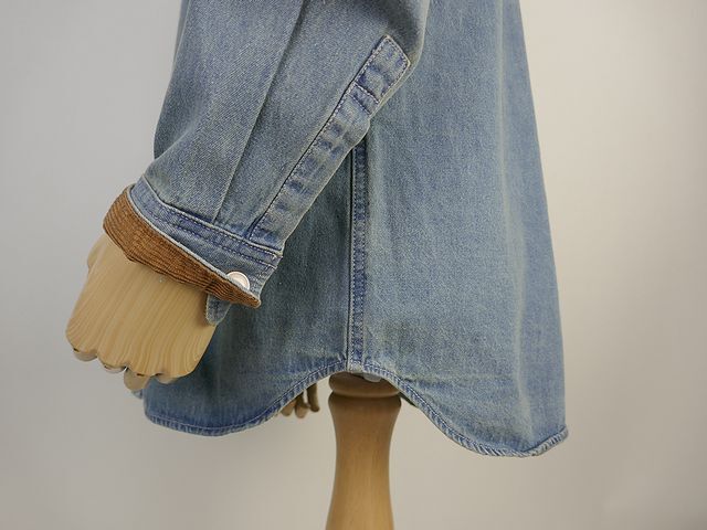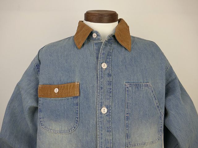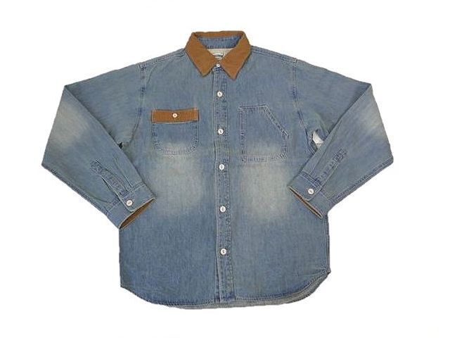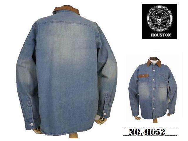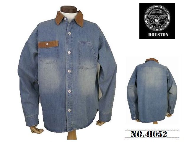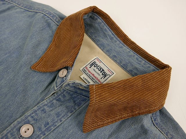 【送料無料 33%OFF】HOUSTON ヒューストン コーデュロイ×デニム WORKシャツ NO.41052 VINTAGE WASH_Lサイズ