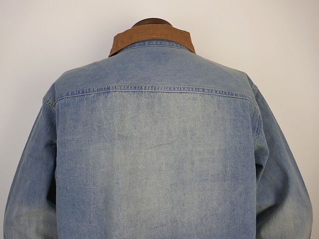 コーデュロイ生地を襟やカフス裏、ポケットへデザインしています。