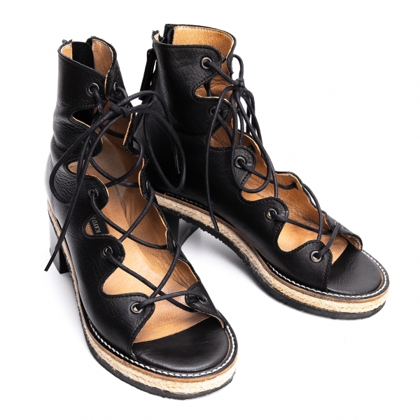 | カヨ ナカムラ バイ ワイズKAYO NAKAMURA by Y's ウェッジソールレザーブーツサンダル 黒1(23位) |