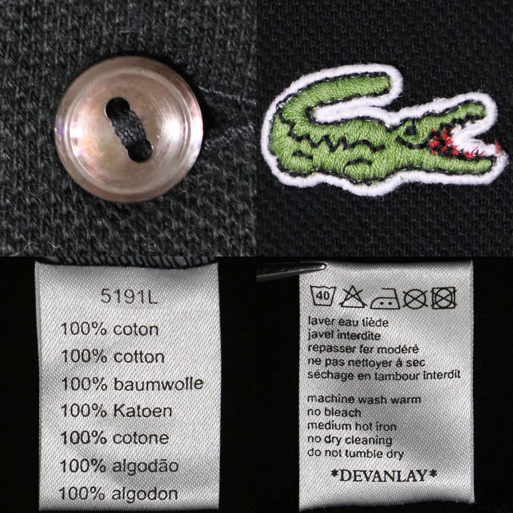 アメリカ購入 美品 LACOSTE ラコステ 鹿の子 ポロシャツ 黒 6 サイズです。