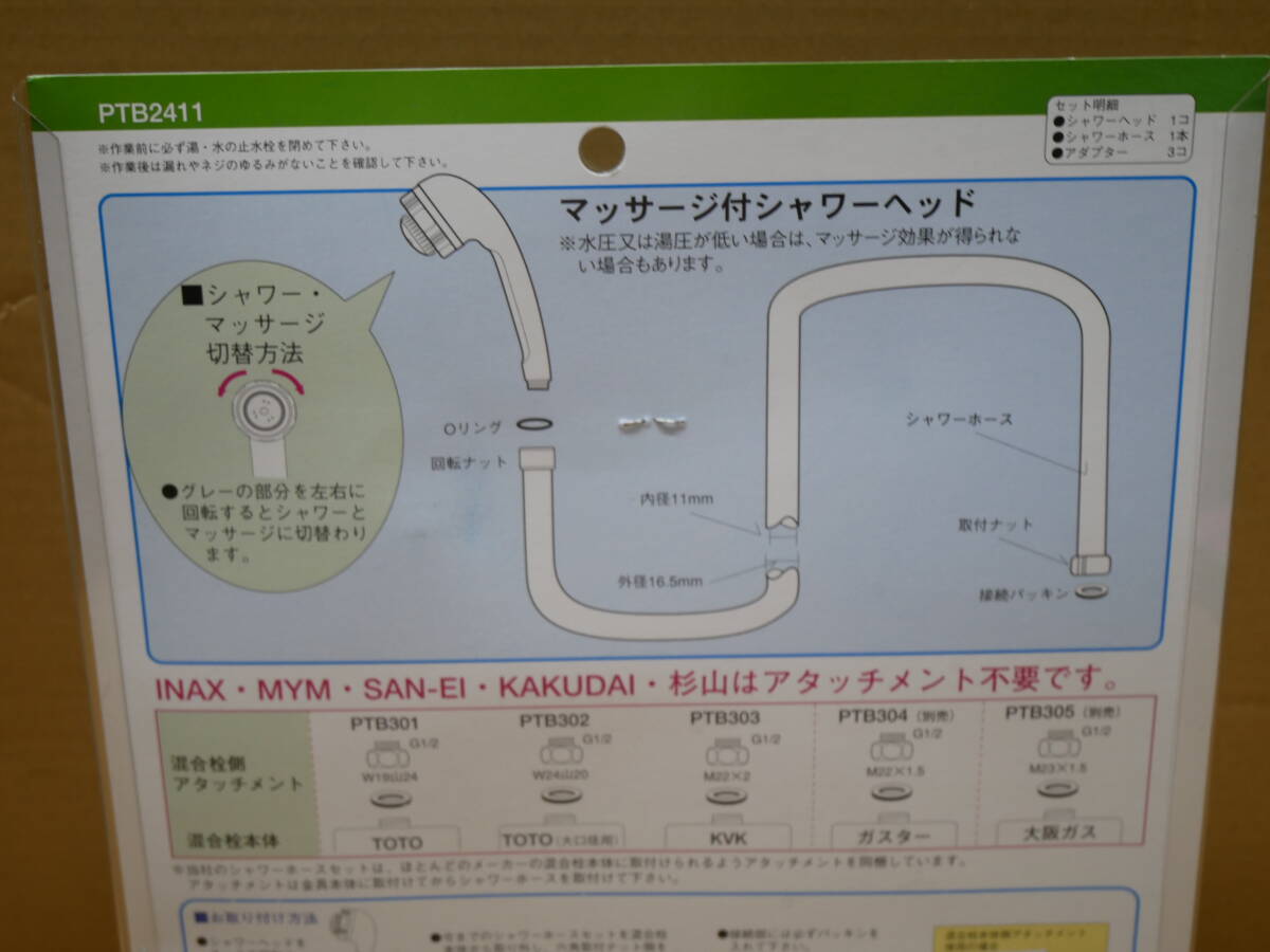 マッサージ付シャワヘッド&ホースセット ホース1.6m PTB-2411 即決価格 | |||