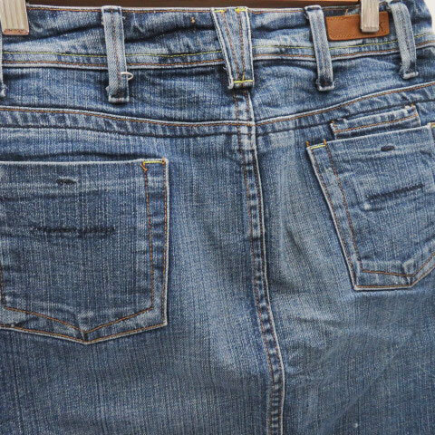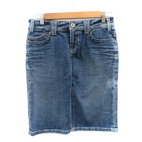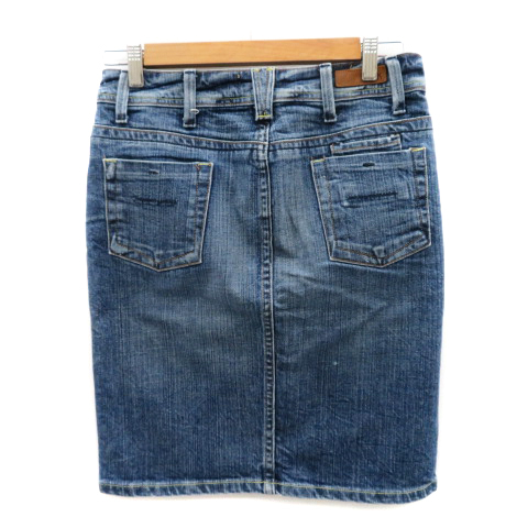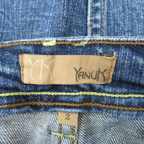 ヤヌーク YANUK タイトスカート デニムスカート ひざ丈 スリット ウォッシュ加工 無地 2 インディゴ /YK16 レディース