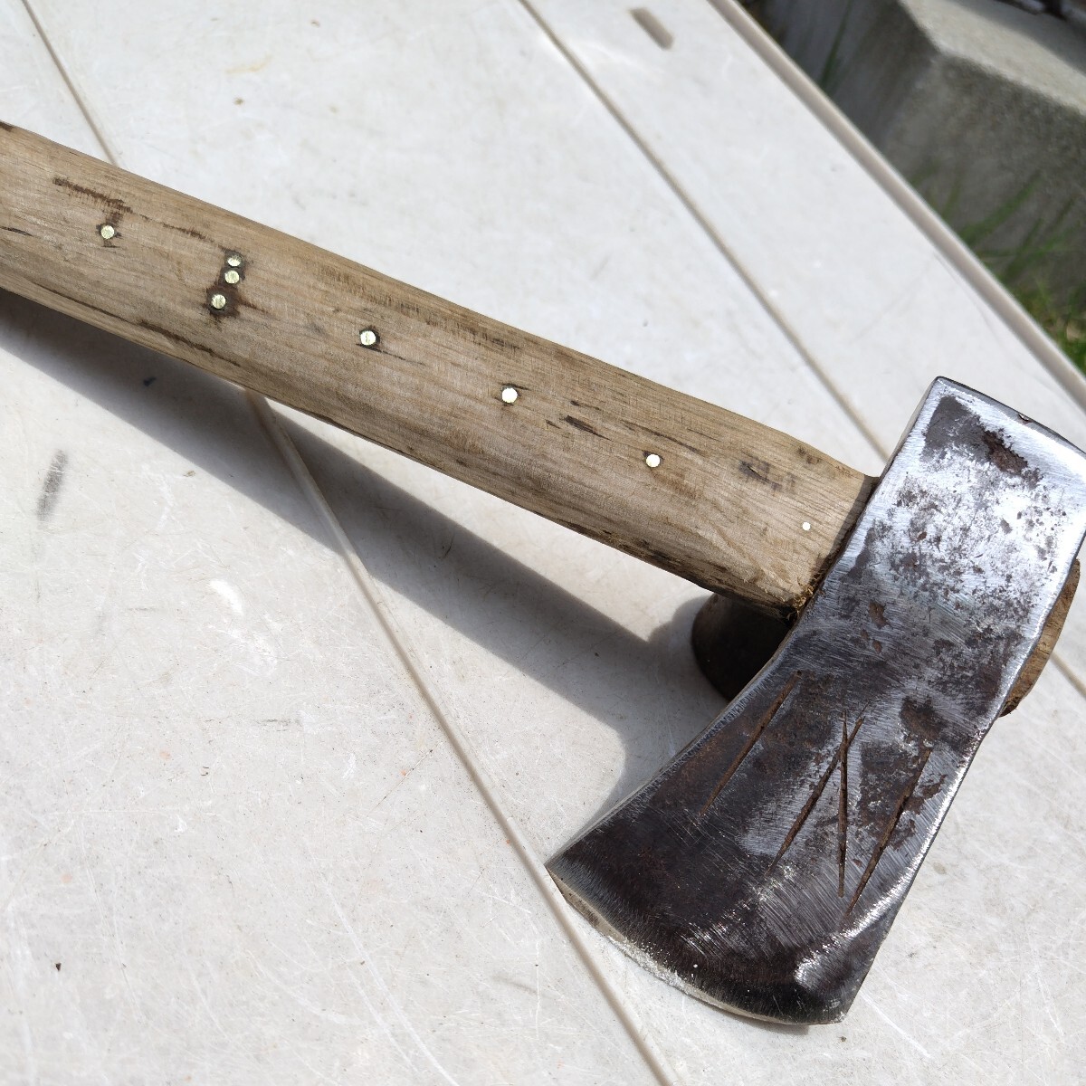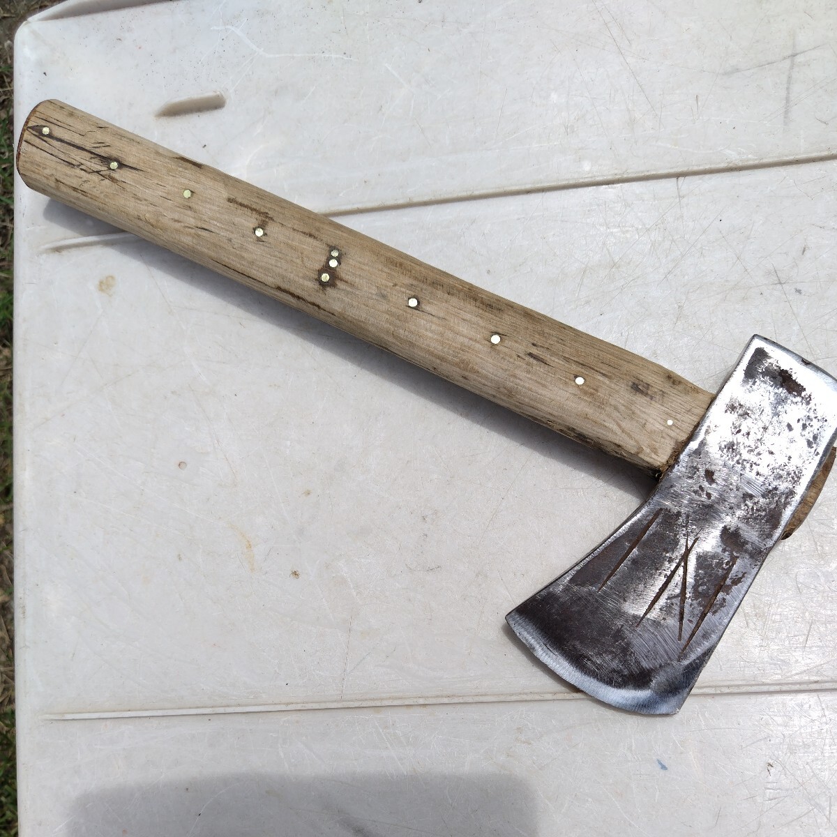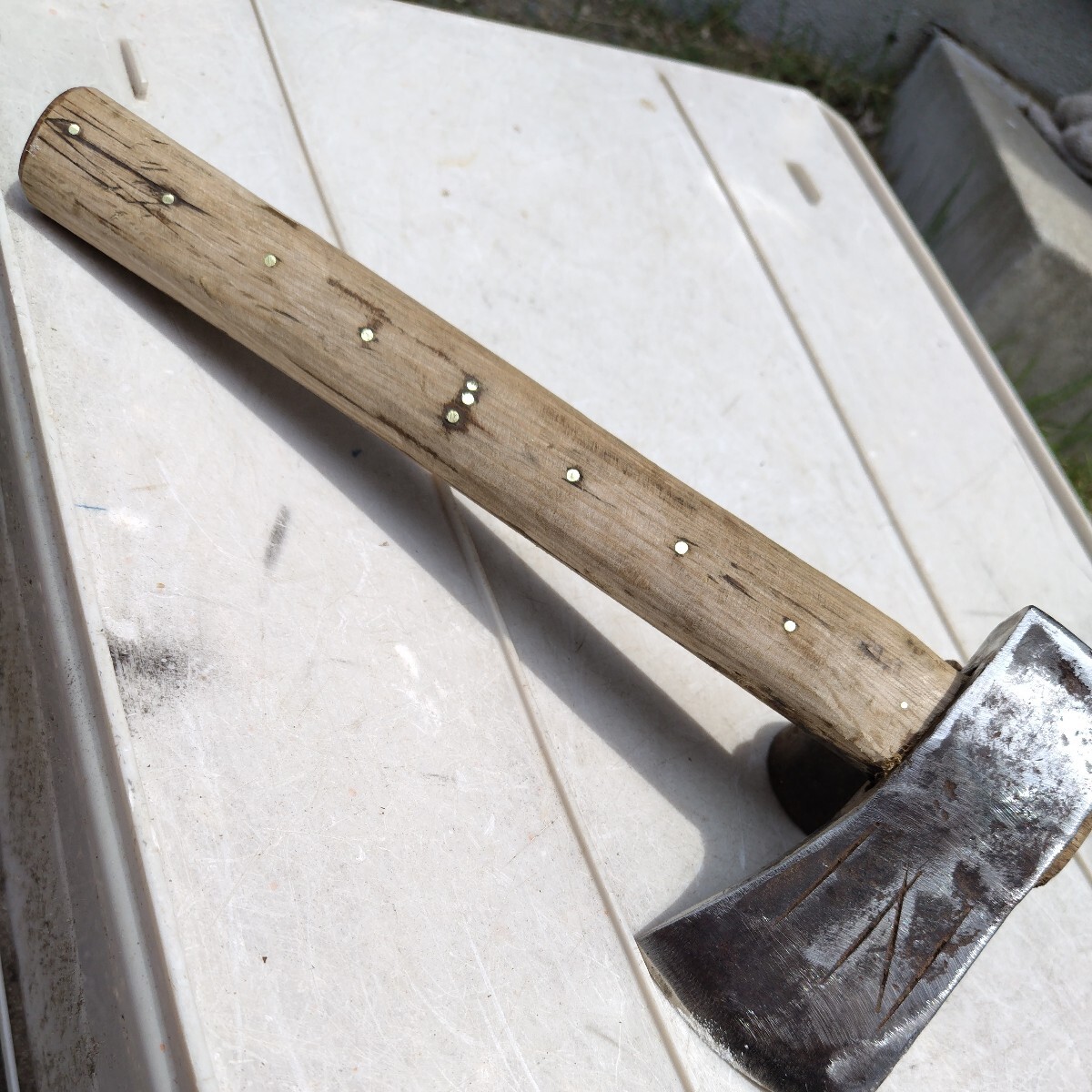 柄部に3cm間隔に真鍮釘を打ってます。写真記載。