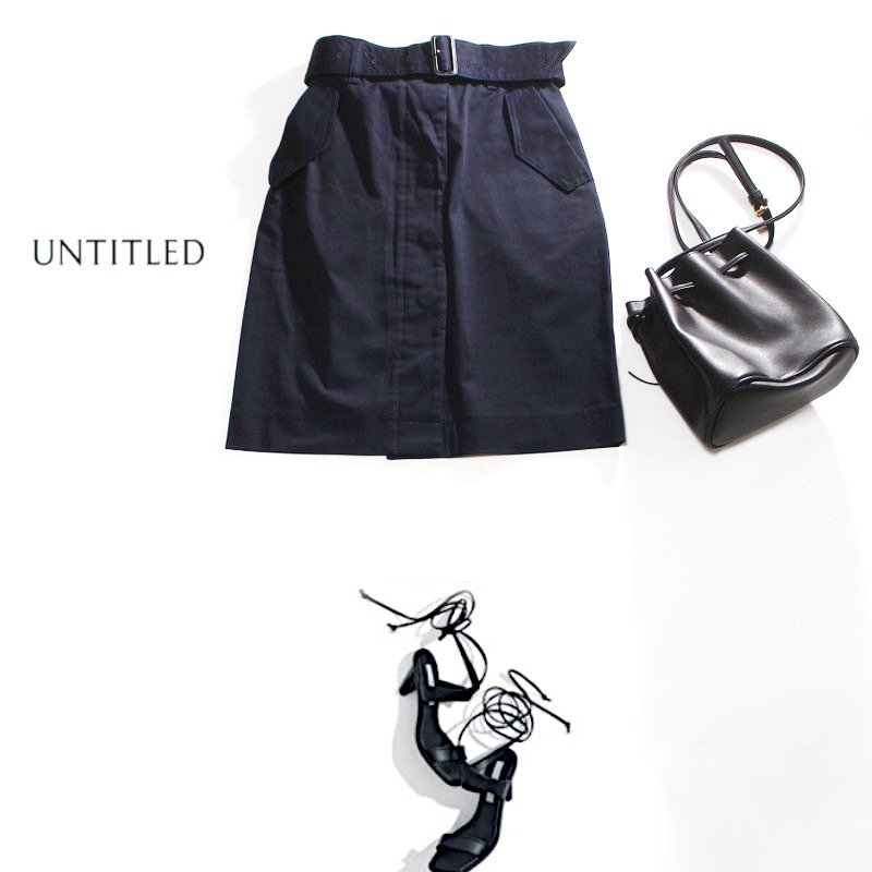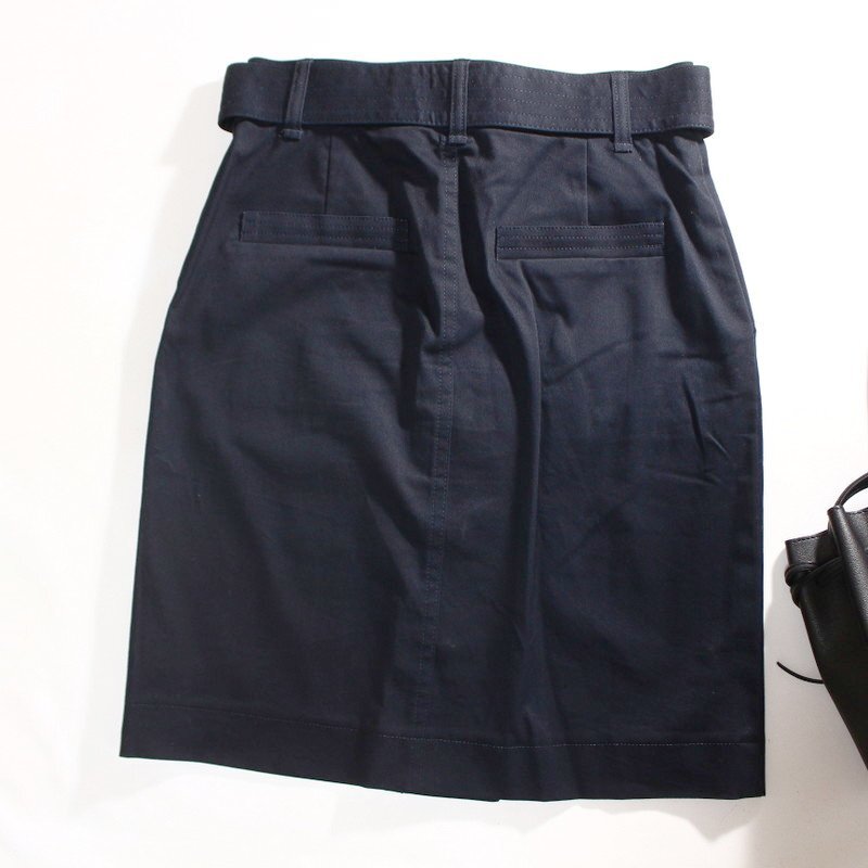 美品 アンタイトル UNTITLED 株) ワールド 春 夏 ベルト付き タイトスカート 9号 2 ネイビー 紺 コットン カラーデニム ストレッチ