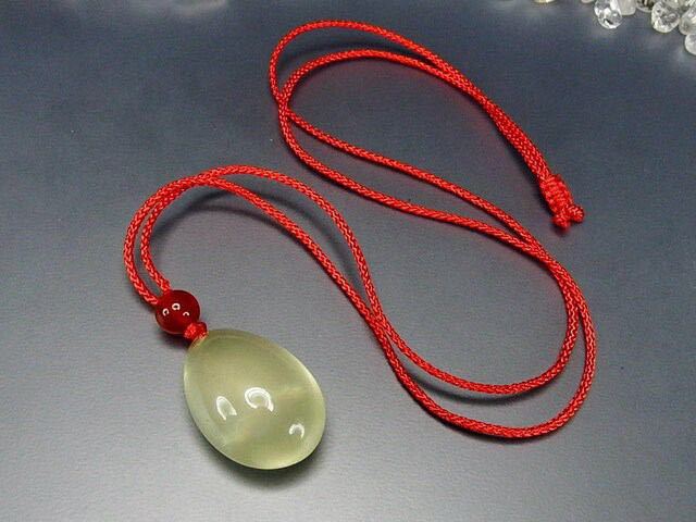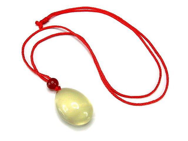 天然石レモンクォーツしずくペンダントトップ赤い糸ネックレス石街