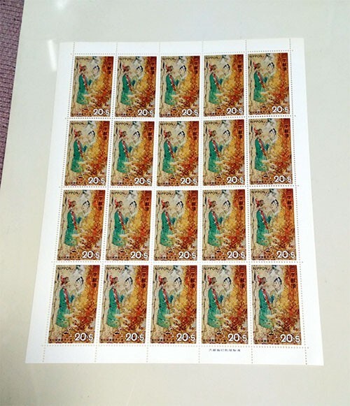 切手 高松塚古墳保存募金 東壁男子像 20+5円 20枚 シート 昭和48年 1973年 1シート 未使用