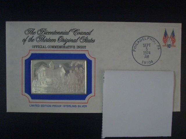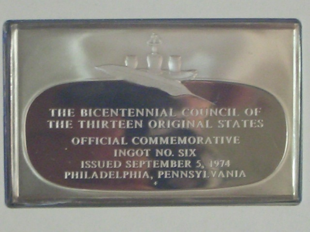 The Bicentennial Council of the 13 Original States Silver Ingot "First Continental Congress" (Franklin Mint) (FM5E)