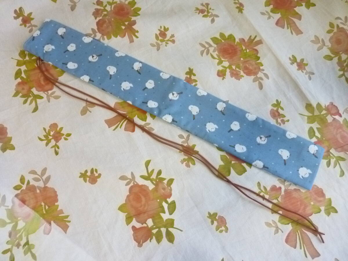 全長約50.5cm、幅約7cm。開口部約14cmがスリットになっていて、竿を出し入れしやすくしています。上部を折りたたんで革紐で結ぶ作りです。