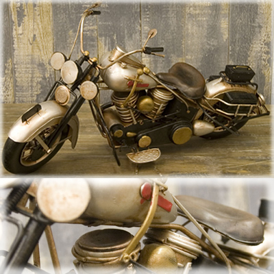 本物そっくり!?ミニチュアのブリキバイク♪オールド バイク(シルバー)♪