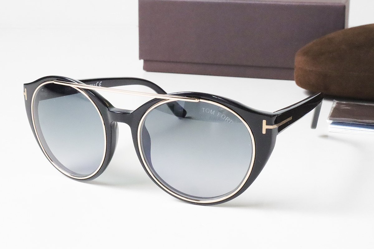 ★未使用 TOM FORD ◆ Joan TF383 ダブルブリッジ サングラス 黒 (ケース 他付属品有) アイウェア フレーム メガネ トムフォード ◆665/C2