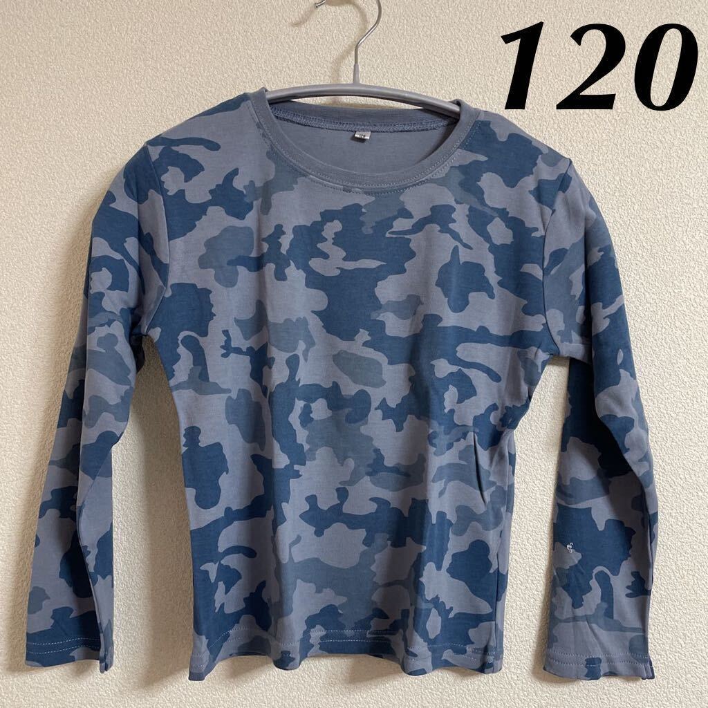新品 長袖Tシャツ 120 未使用 ブルー 迷彩 男の子 インナー 下着