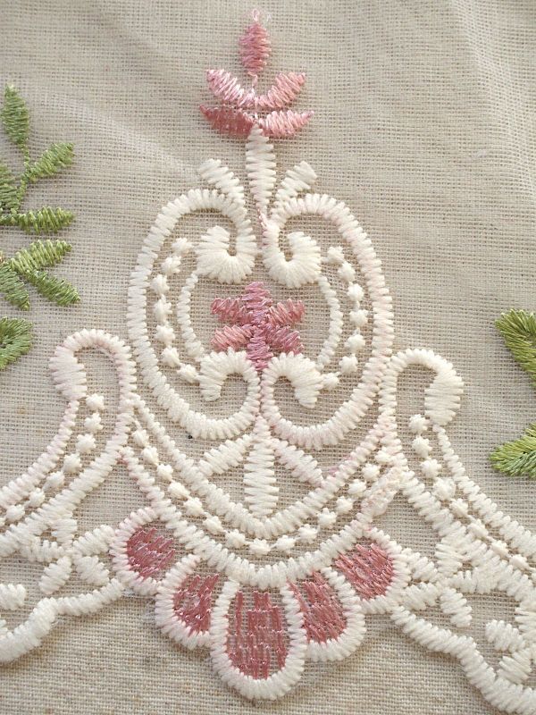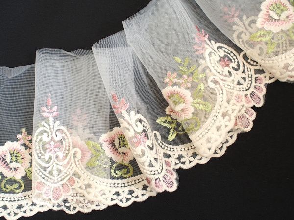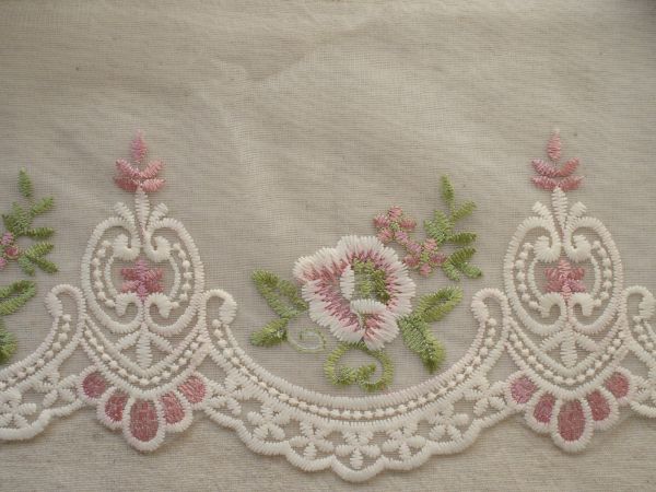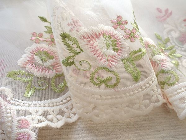 即決 ! 50cmカット 幅広 刺繍レース ピンク 花☆手芸