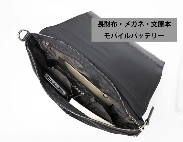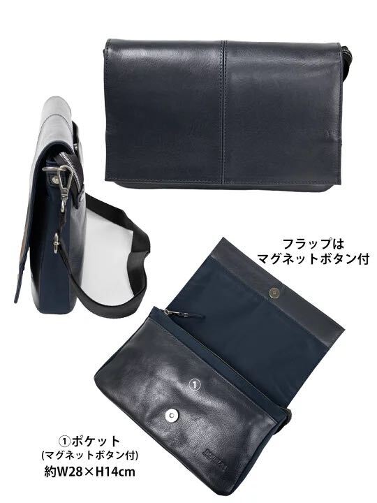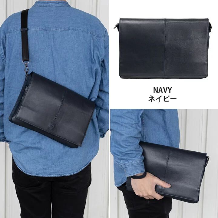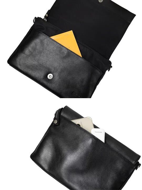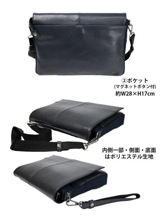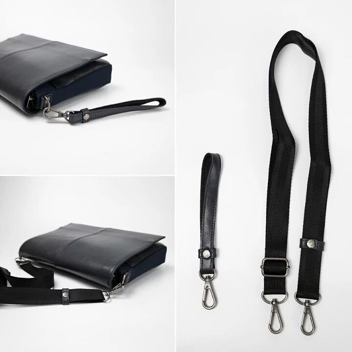 ●クラッチ・メンズポーチとして使えるハンドストラップと、ショルダーバッグになるショルダーベルト2種類付属した平日も休日も使いまわせる2WAYバッグです。側面・底部他はポリエステル生地、前面・背面は落ち着いた牛革を使用しています。