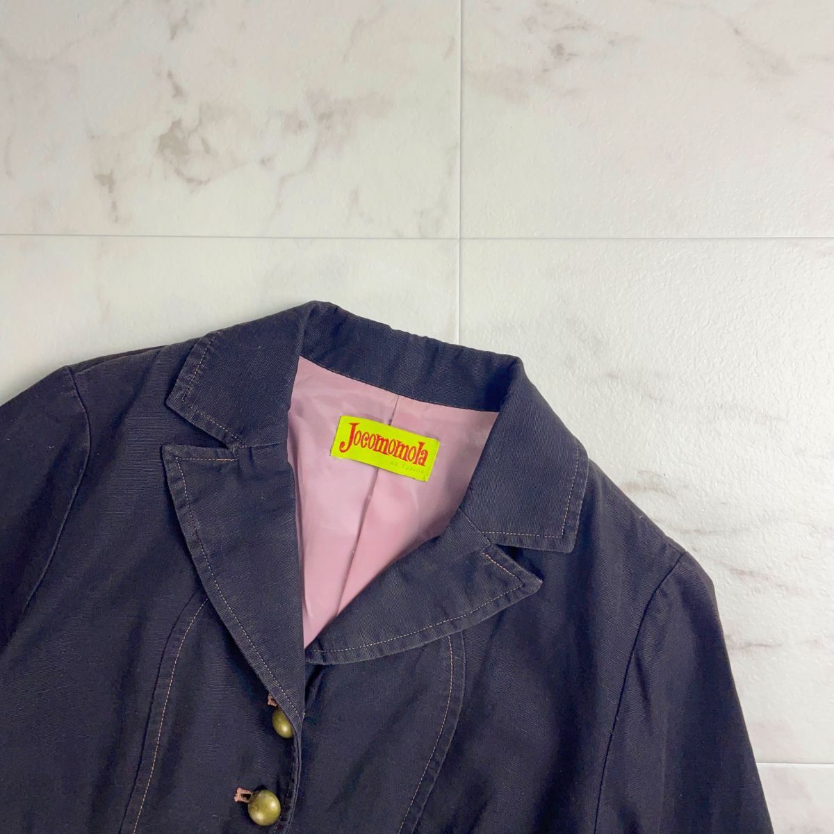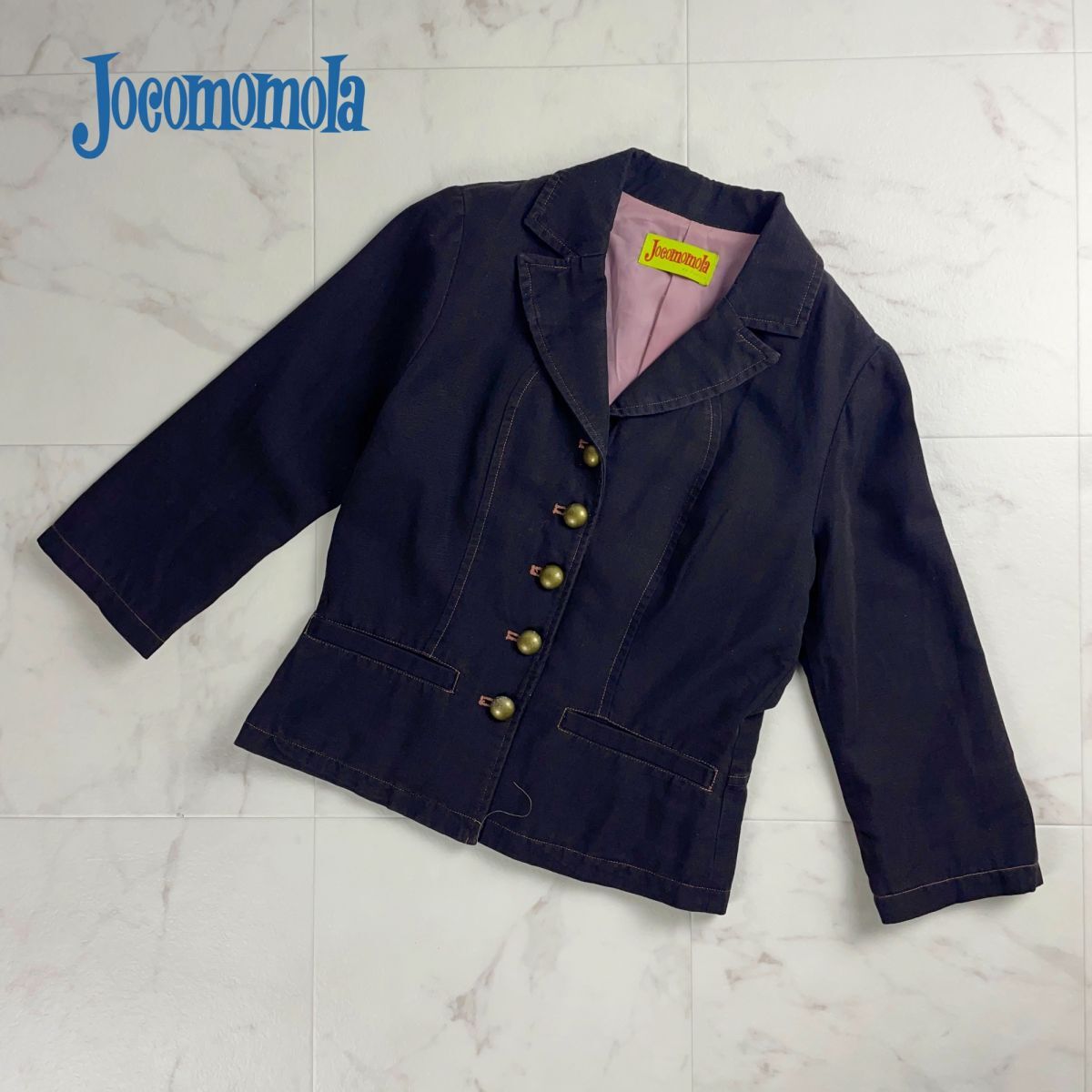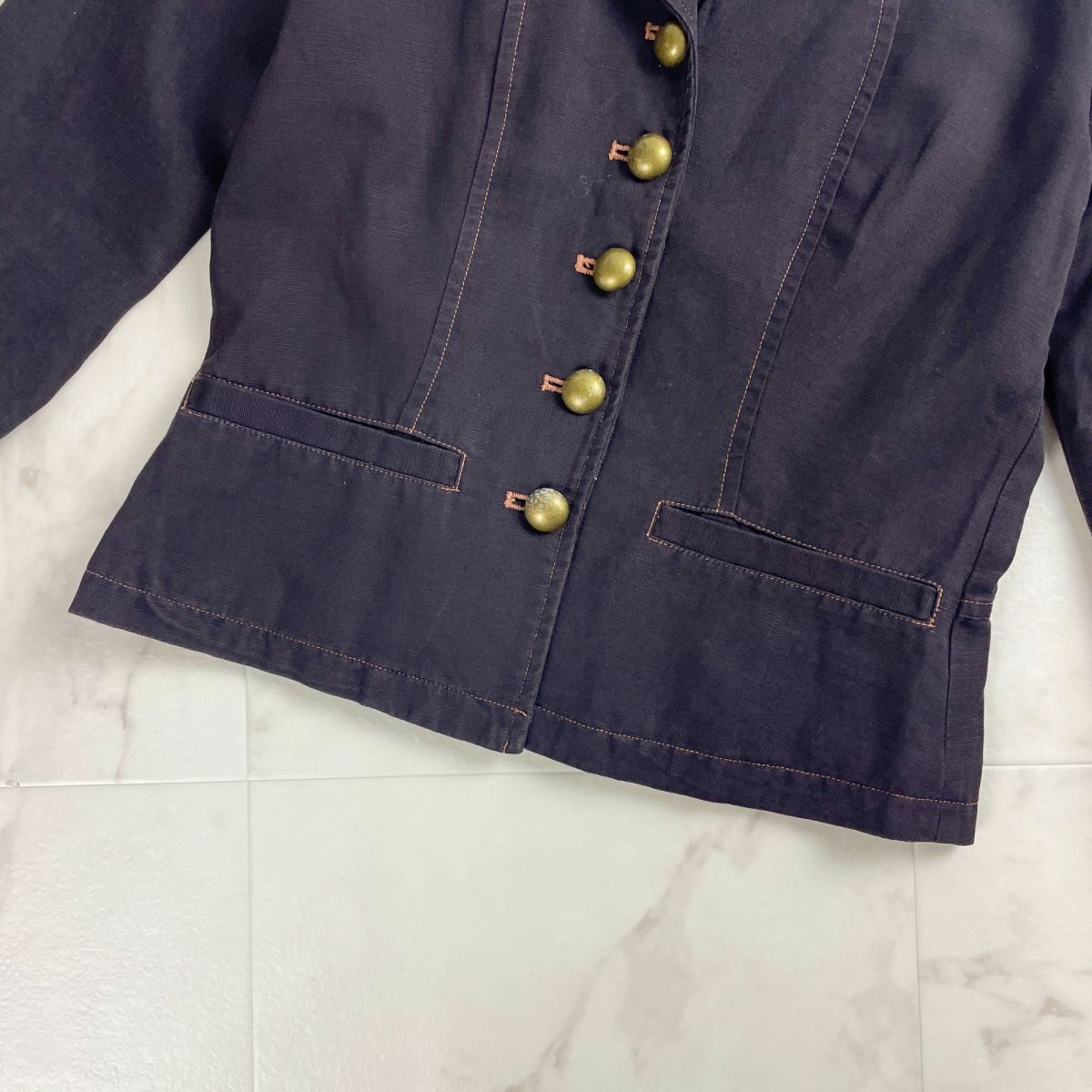 美品 Jocomomola ホコモモラ シビラ コットンリネン 七分袖ブラウスジャケット トップス レディース 黒 ブラック サイズ40*QC286